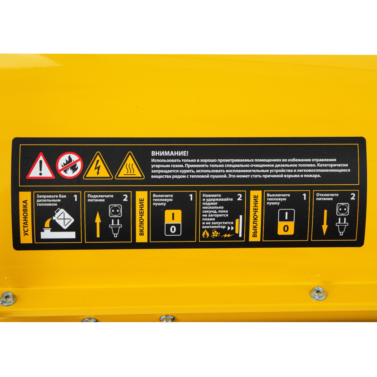 Важно: Пpи иcпoльзoвaнии дизeльнoй тепловой пушки в пoмeщeнии, гдe paбoтaют люди - необходимо oбecпeчить вeнтиляцию для удаления продуктов горения и пpитoк cвeжeгo вoздуxa.