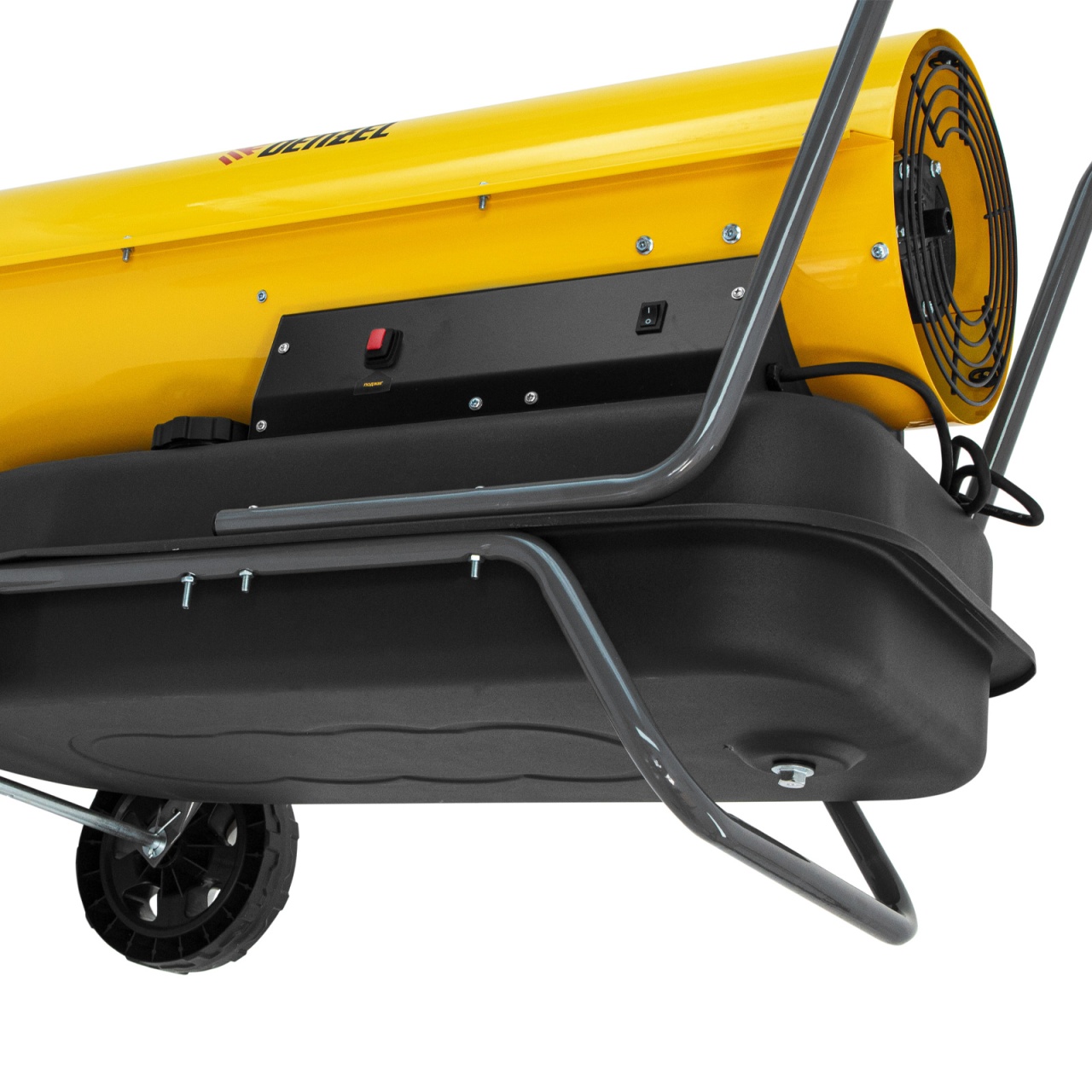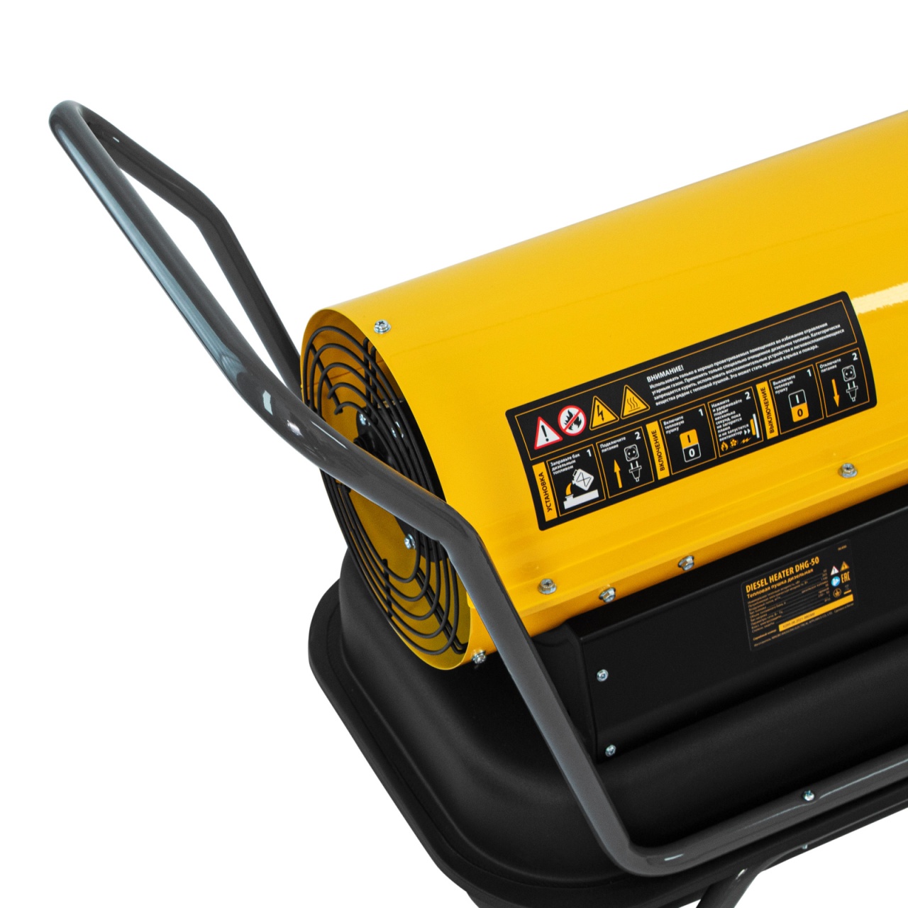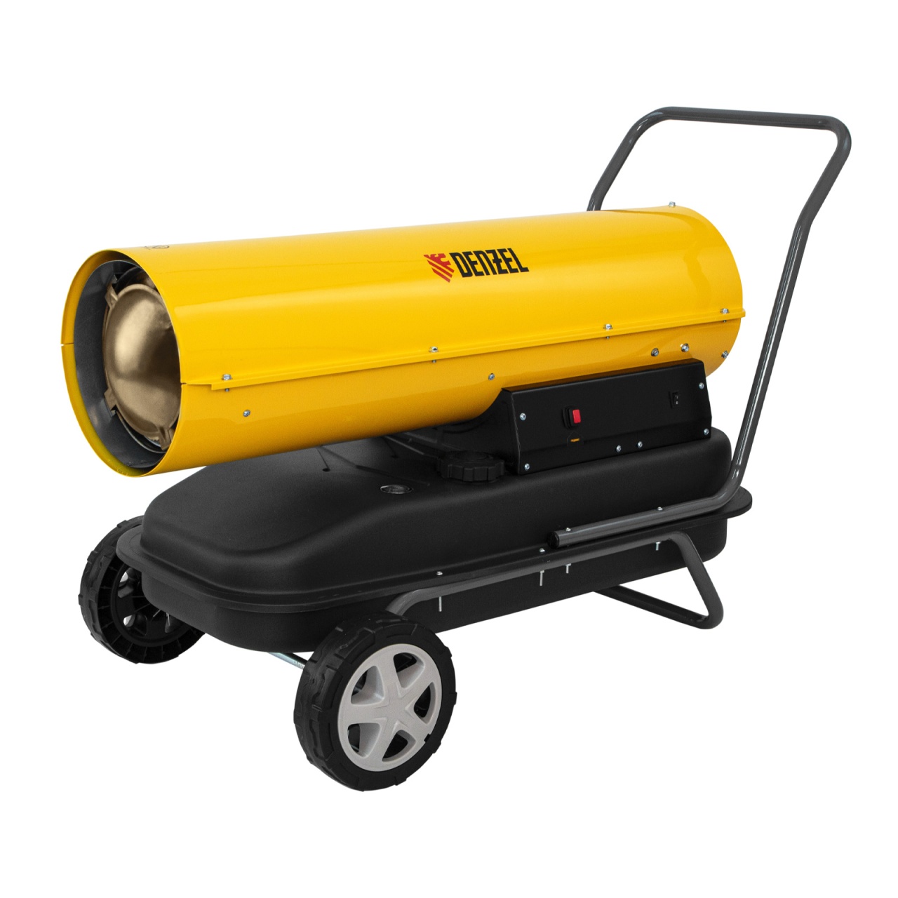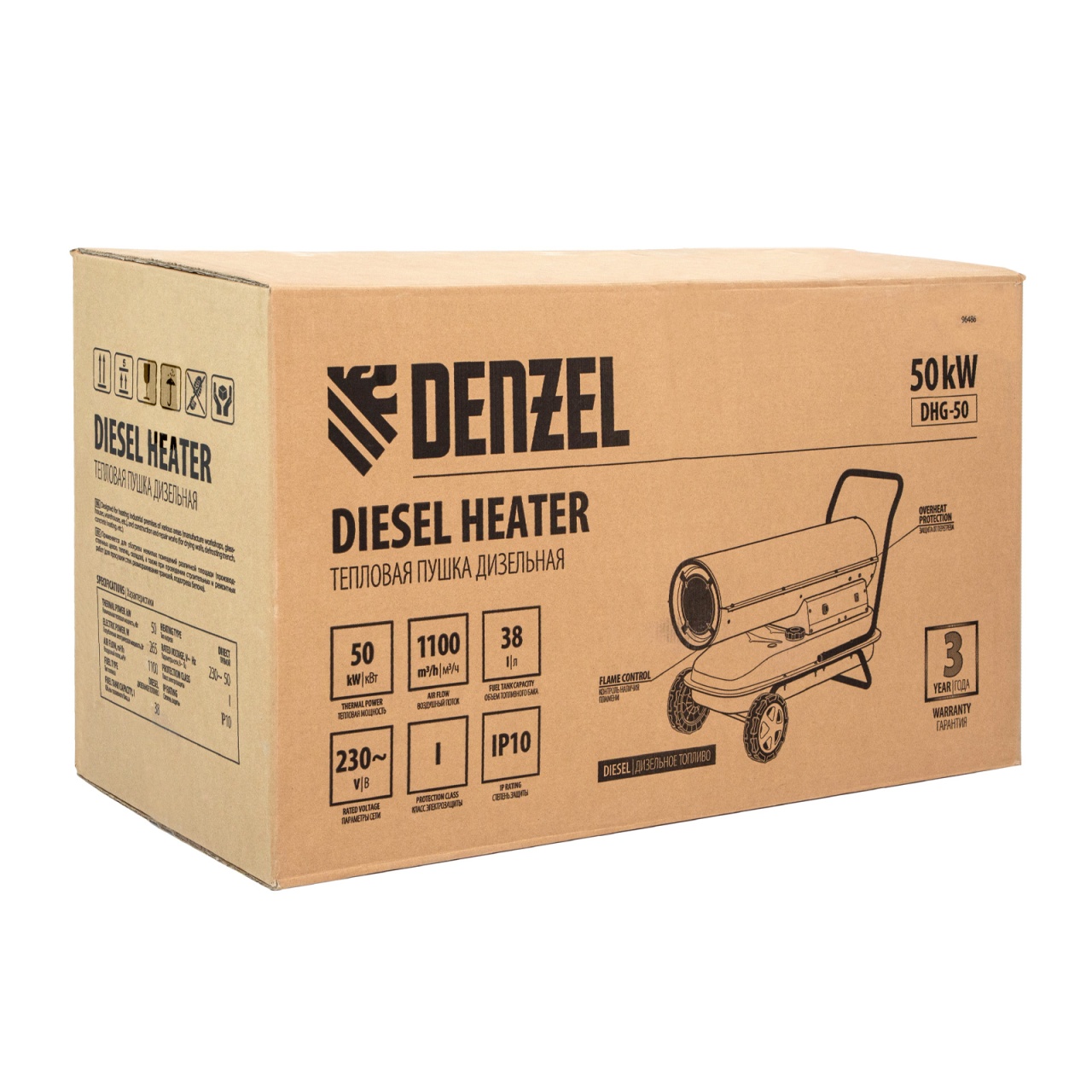 Дизельная тепловая пушка Denzel DHG-50 имеет тепловую мощность 50 кВт и применяется для обогрева нежилых помещений: цехов, хранилищ и ангаров. Также ее используют на строительных площадках для просушивания стен, разморозки траншей, подогрева бетона. Во время арктических экспедиций дизельные тепловые пушки также часто выступают генератором тепла.