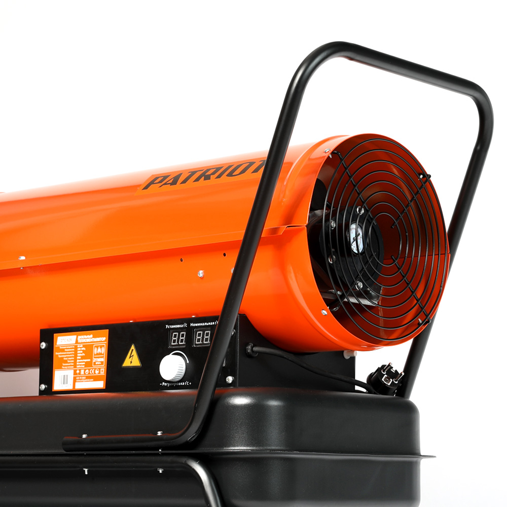 Дизельная тепловая пушка PATRIOT DTС 629 633703063 оснащена колесами для удобства перемещения. Металлическая опора обеспечивает устойчивость данного оборудования во время работы. Предусмотрена защита пушки от перегрева и перепадов напряжения. Тепловая пушка имеет дисплей с индикацией температуры и результатов диагностики. За счет прямого нагрева необходимо проветривать обогреваемое помещение.