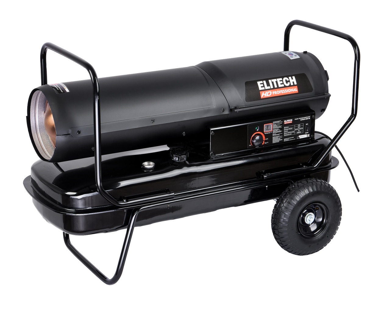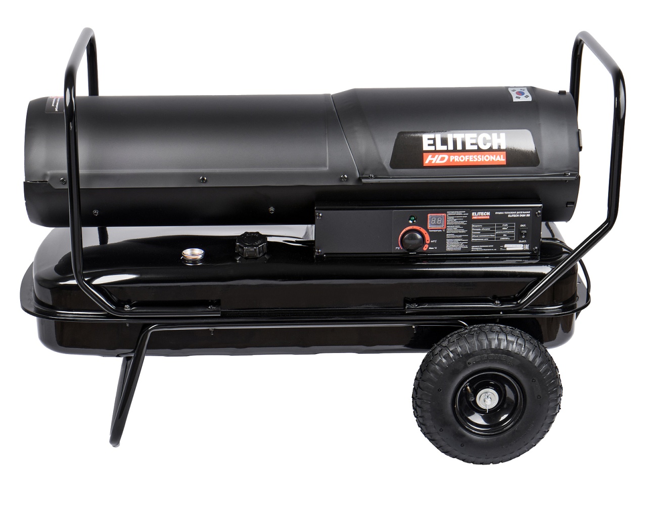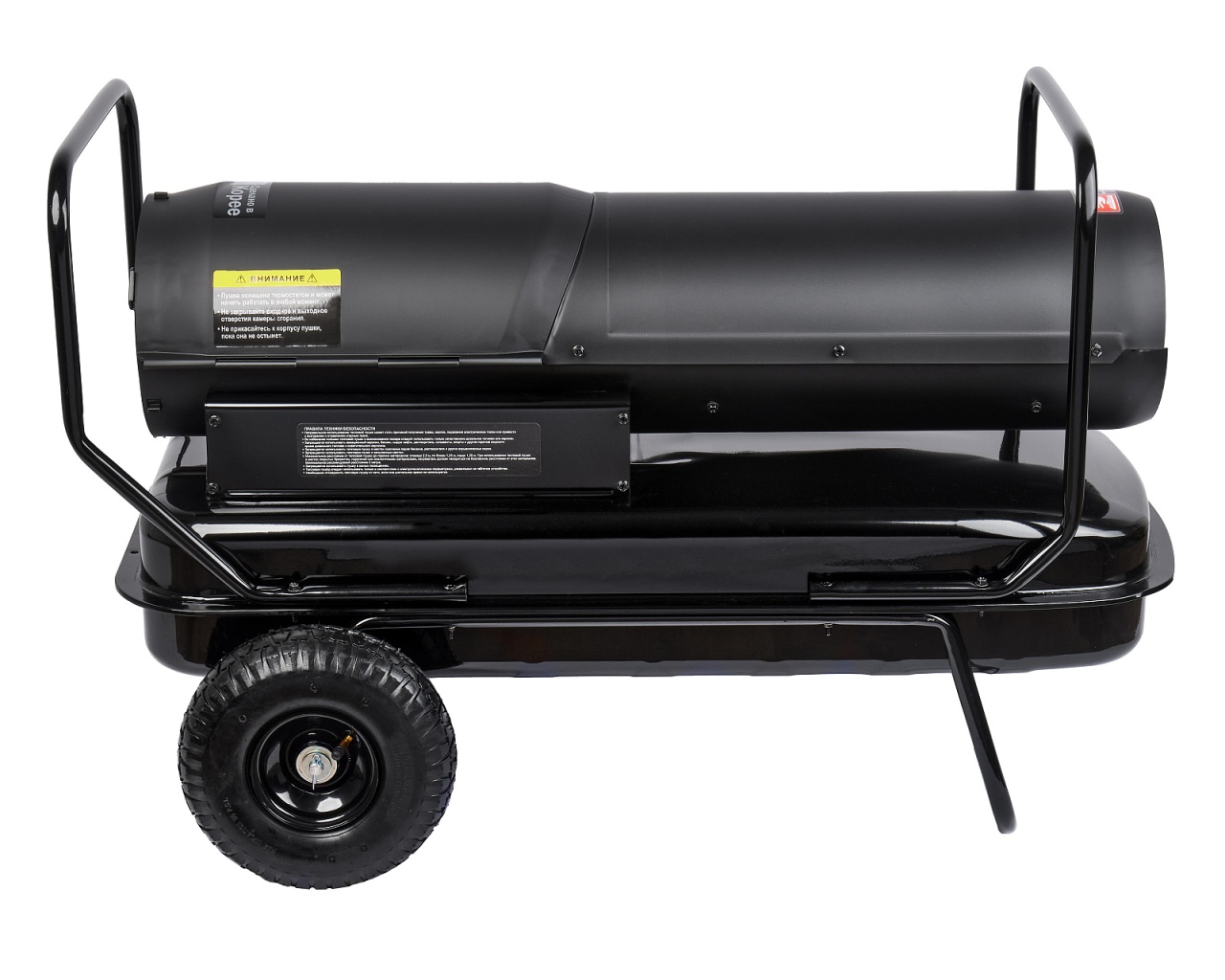 Дизельная тепловая пушка прямого нагрева (или воздухонагреватель) мощностью 51 кВт и площадью обогрева 400 кв.м и топливным баком на 50 литров, предназначена для работы на открытых/полузакрытых площадках и временного обогрева/просушки хорошо проветриваемых помещений или с работающей приточно-вытяжной вентиляцией.