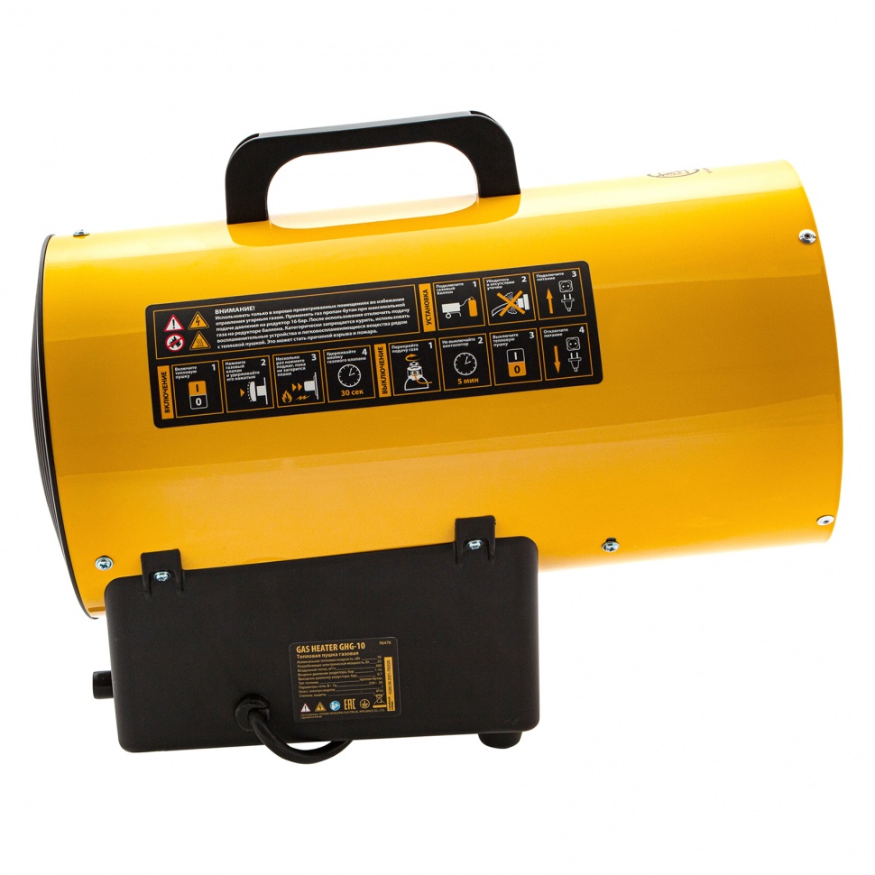 Газовая тепловая пушка Denzel GHG-10 имеет тепловую мощность 10 кВт и применяется для работы в мастерских, гаражах, строящихся объектах, а также нашли особую популярность при установке натяжных потолков.
