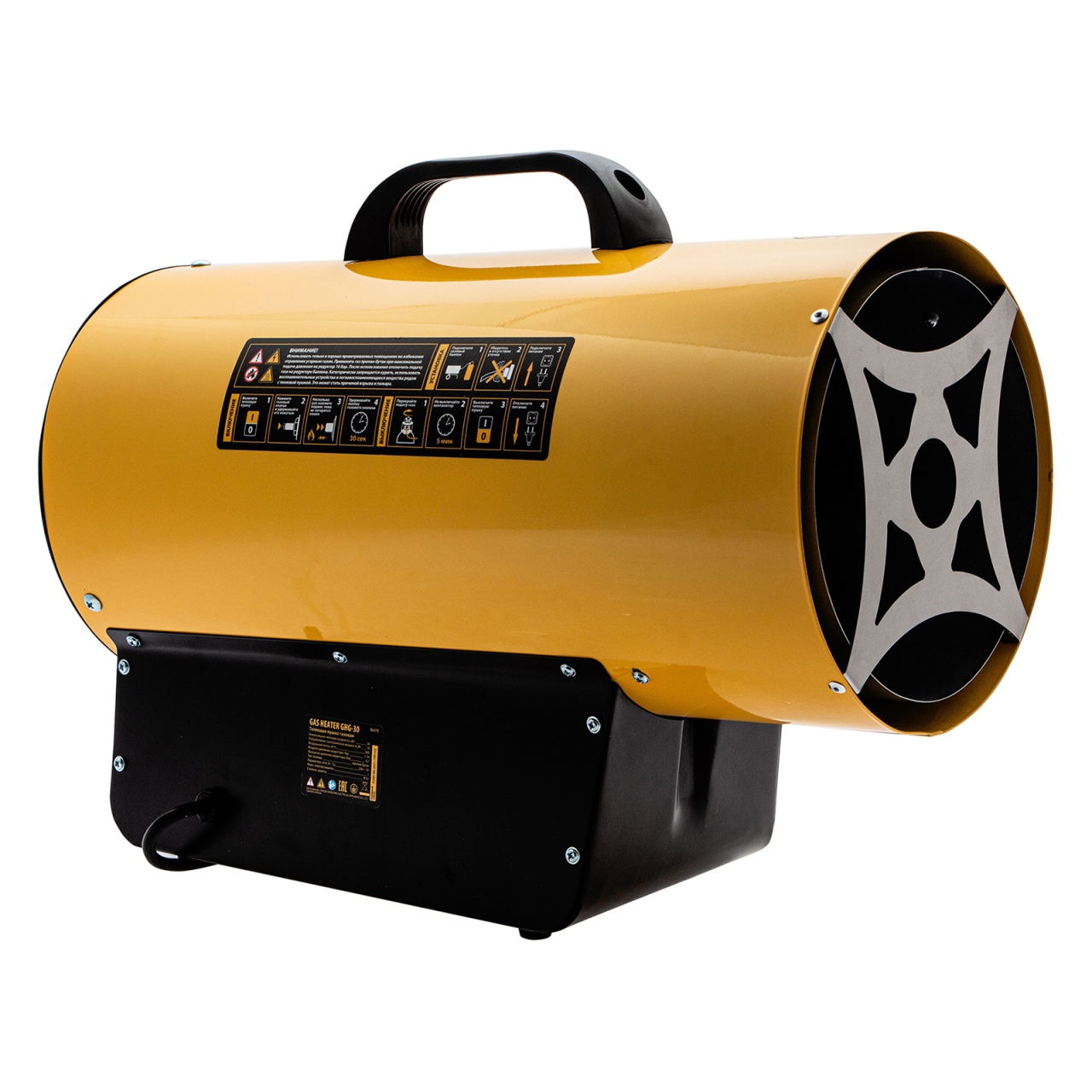 - Широкая платформа придает тепловой пушке устойчивость.