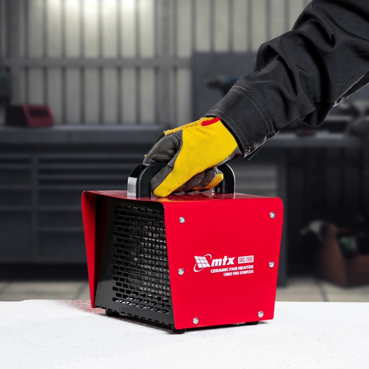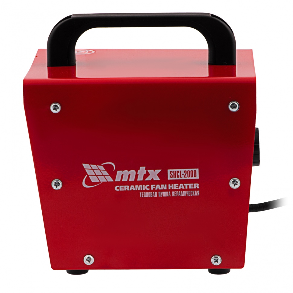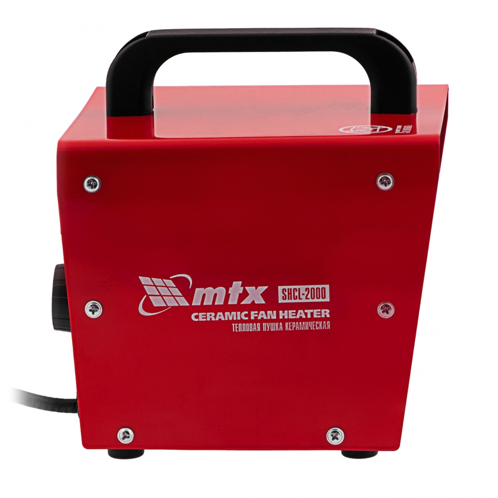 Керамическая тепловая пушка MTX SHCL-2000 96402 производительностью 125 куб. м/ч, в квадратном корпусе, работает в режиме нагрева на полной мощности 2 кВт или частичной 1 кВт, а также в режиме вентиляции. Предназначена для обогрева цехов, складов, мастерских и других нежилых помещений площадью до 20 кв. м. Также позволяет быстро просушивать различные поверхности, например, стяжки пола или оштукатуренные стены.