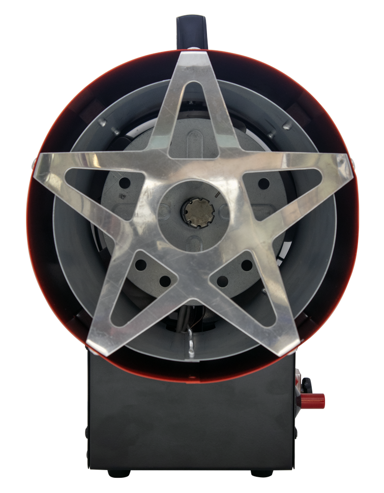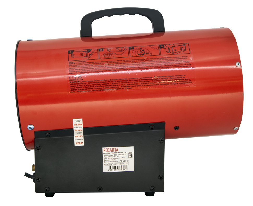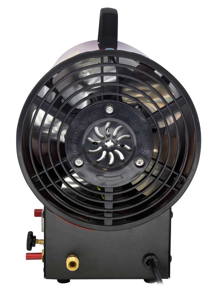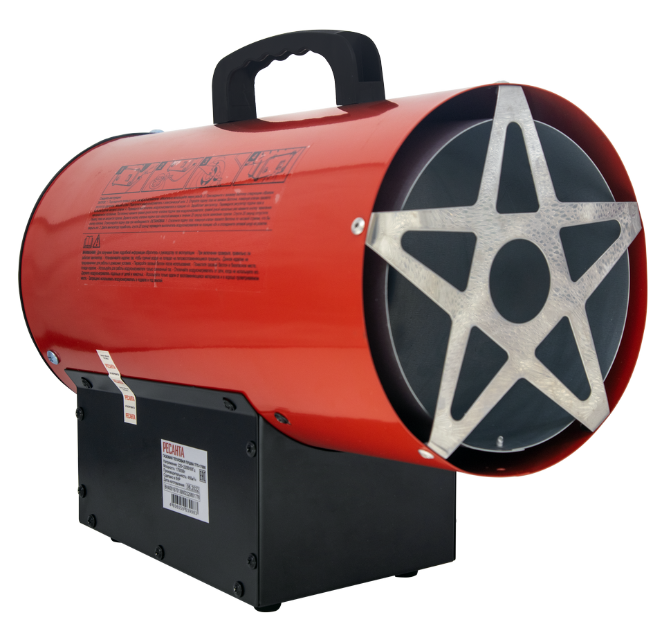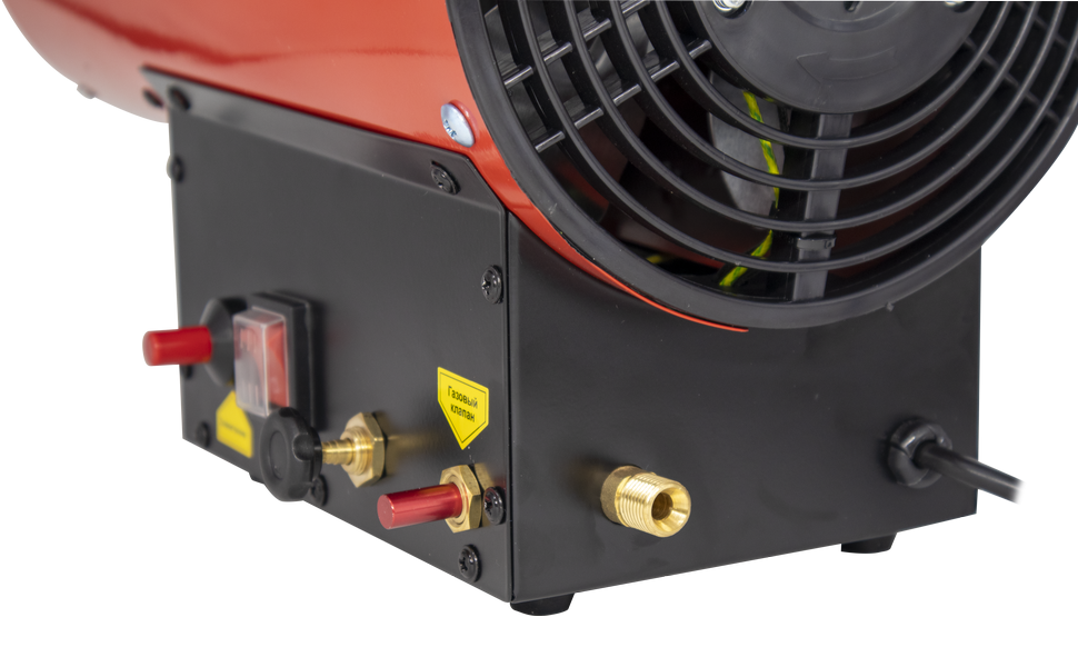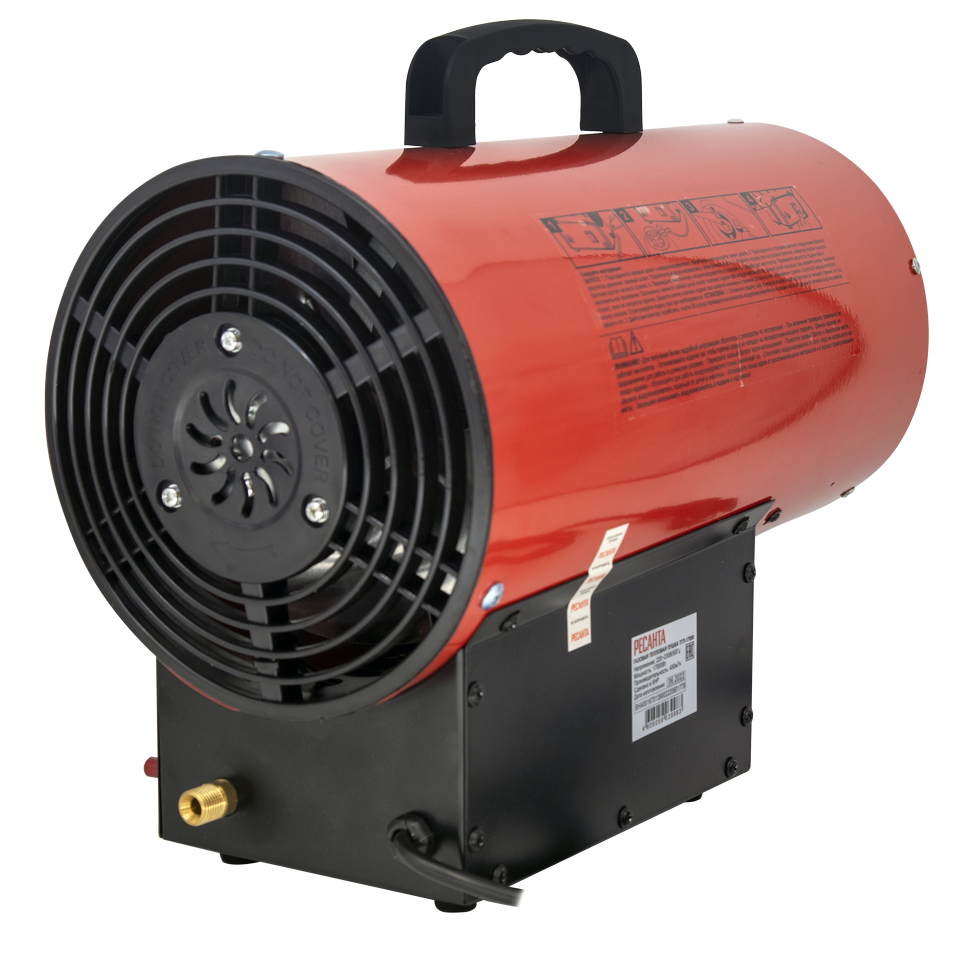 Газовая пушка – воздухонагреватель, работающий на сжиженном газовом топливе. Топливо необходимо для получения горячей атмосферы в камере сгорания, а электроэнергия, подводимая к устройству, необходима для питания вентилятора, нагнетающего воздух, и для функционирования автоматики. Газовые пушки прямого нагрева являются простой и надежной конструкцией без дымохода, но горячий воздух и продукты сгорания из устройства поступают в помещение.