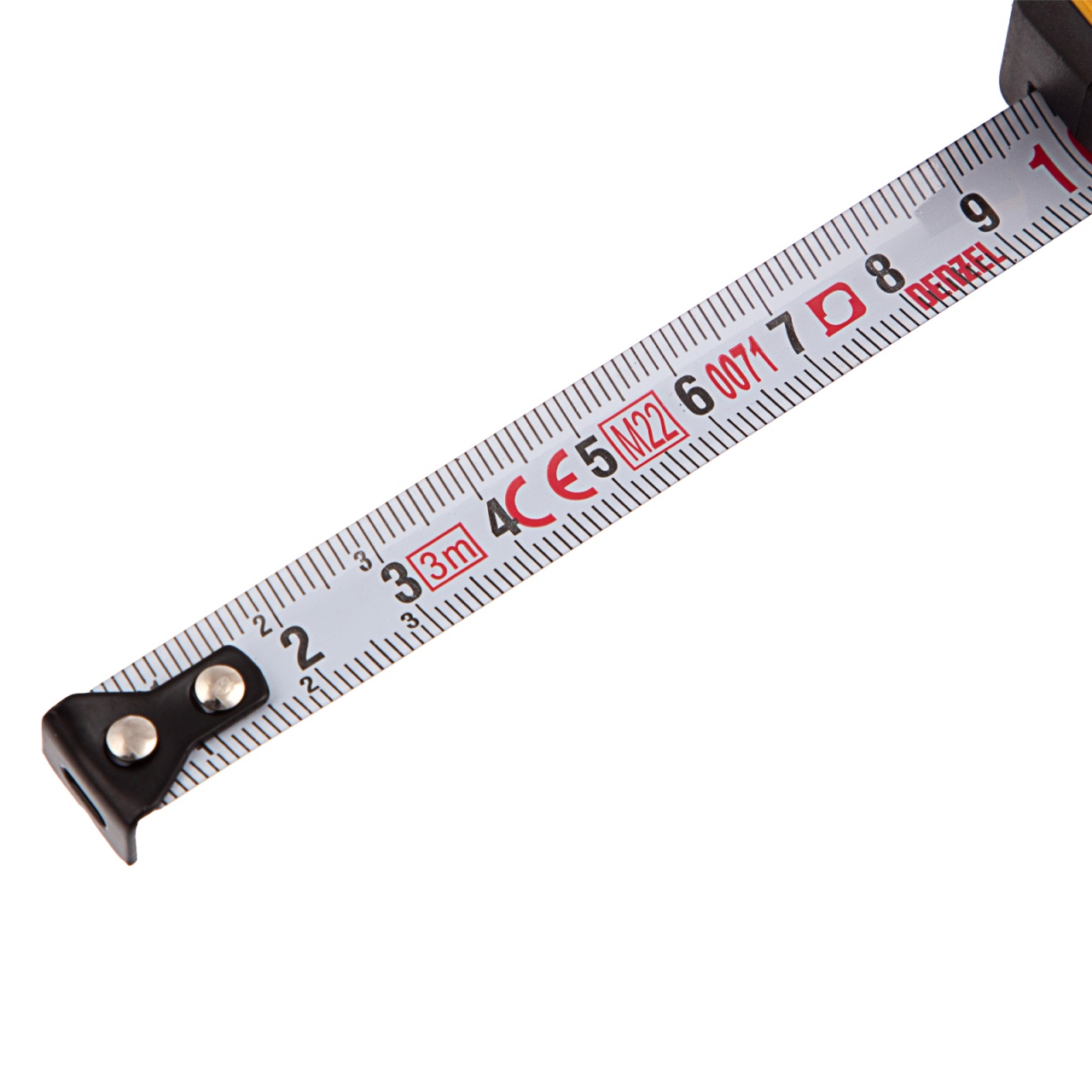 Рулетка Denzel 31540 в двухкомпонентном корпусе, с кнопкой-паузой, с полотном шириной 13 мм и длиной 3 м, используется для измерения расстояний и размеров предметов. Стальная лента с эмалевым покрытием и защитной пластиной в месте крепления зацепа рассчитана на долгий срок службы. Рулетка будет полезна во время строительства и ремонта, а также пригодится в быту.