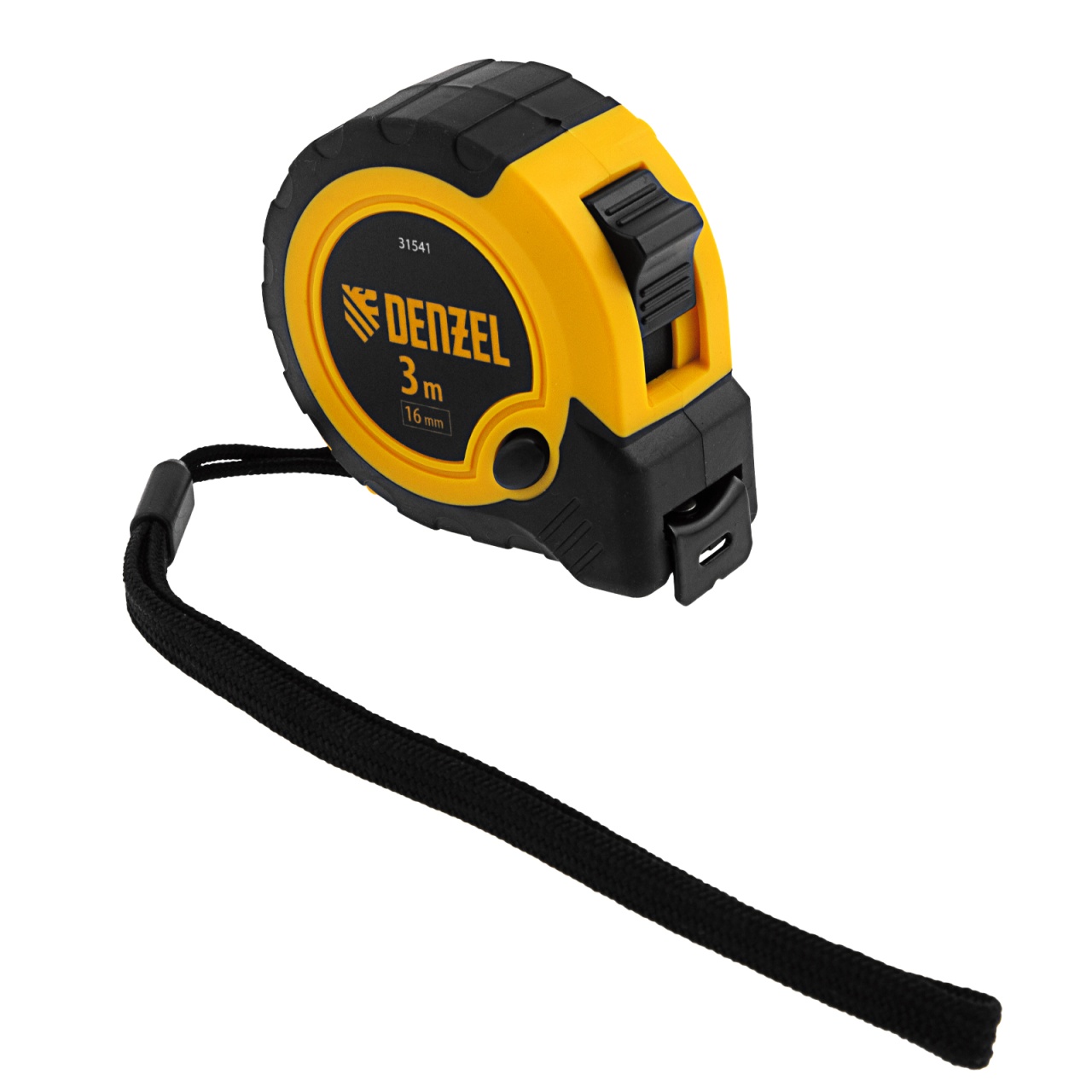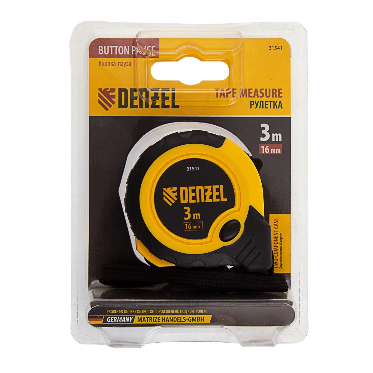 Рулетка Denzel 31541 в двухкомпонентном корпусе, с кнопкой-паузой, с полотном шириной 16 мм и длиной 3 м, используется для измерения расстояний и размеров предметов. Стальная лента с эмалевым покрытием и защитной пластиной в месте крепления зацепа рассчитана на долгий срок службы. Рулетка будет полезна во время строительства и ремонта, а также пригодится в быту.
