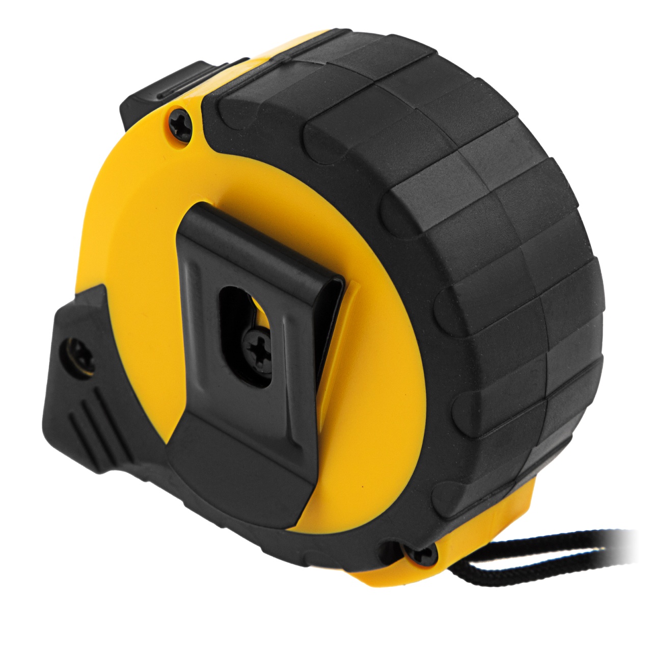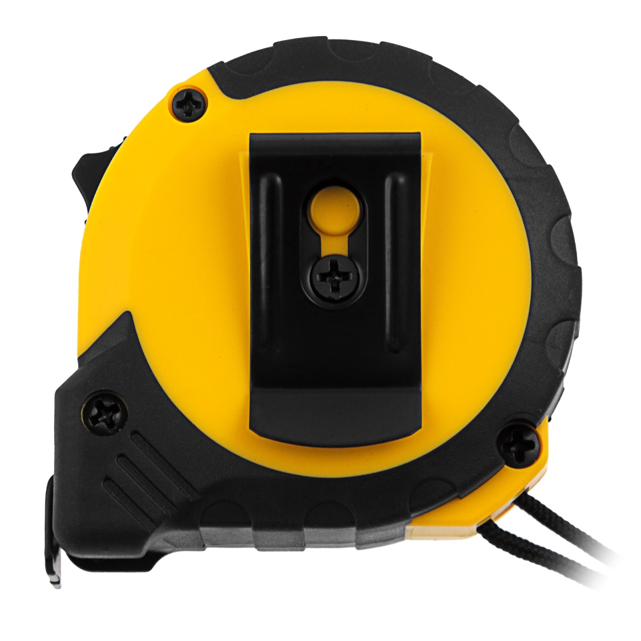 • Дополнительные возможности — поясной зажим позволяет закрепить рулетку на ремне, чтобы освободить руки во время работы.