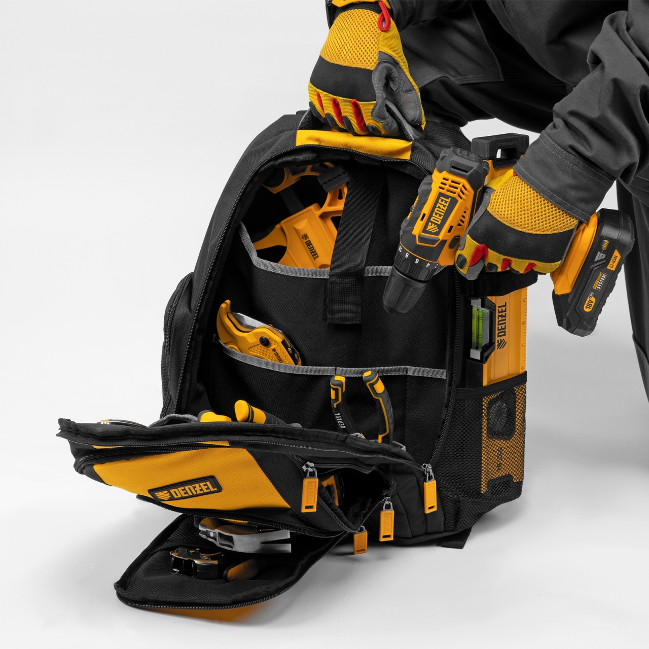 Рюкзак предназначен для транспортировки ручного инструмента, изготовлен из прочного синтетического материала, устойчивого к истиранию - плотный полиэстер (600 D).