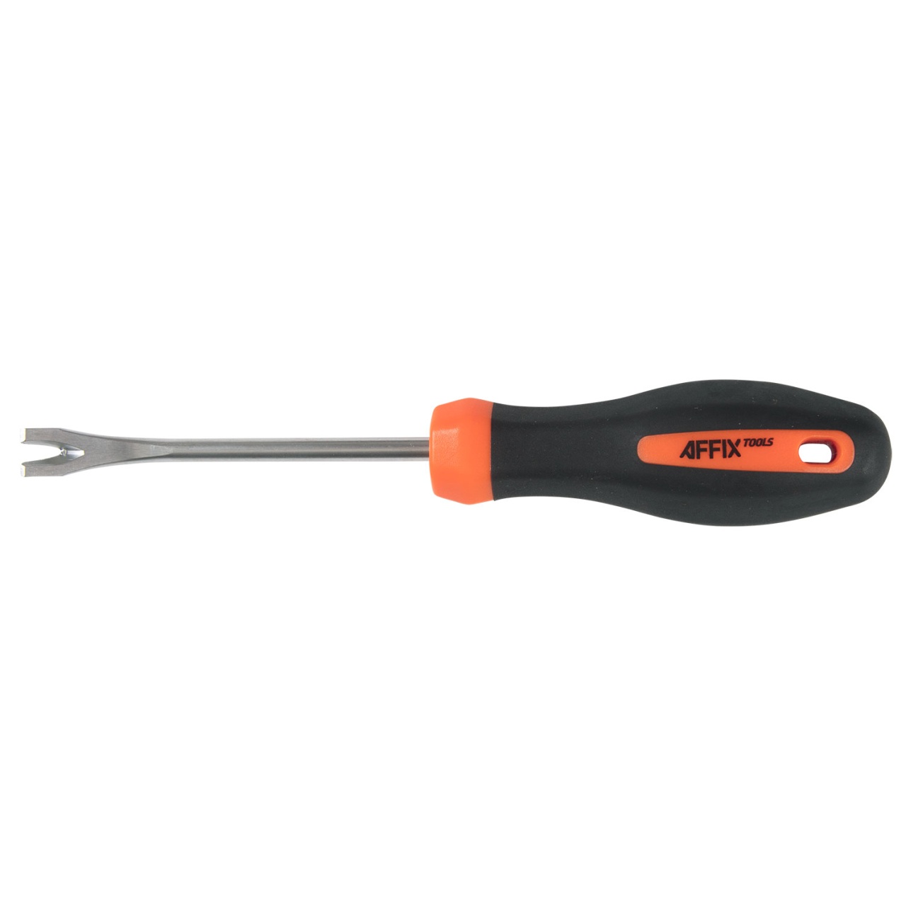 Инструмент имеет эргономичную рукоять из двухкомпонента PP+TPR, а форма съёмника позволяет проводить работы без опасения повредить приборную панель или внутреннюю обшивку авто.