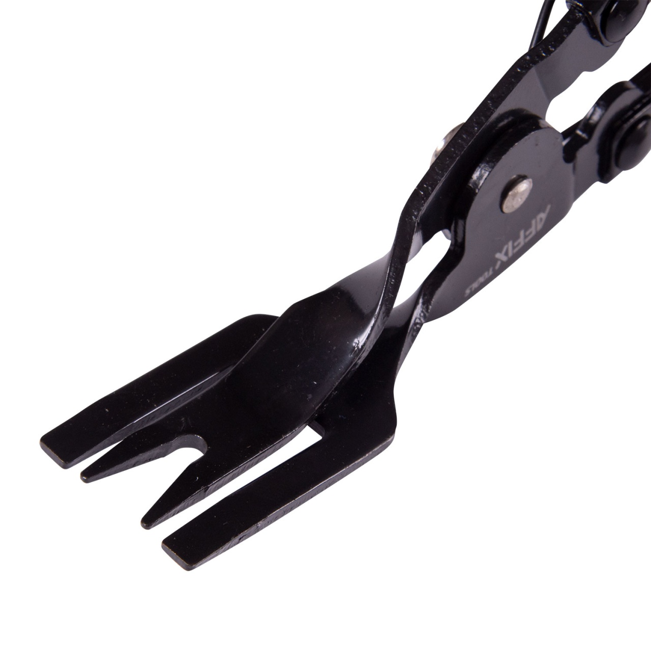 Форма щипцов позволяет проводить работы без опасения повредить приборную панель или внутреннюю обшивку авто. Конструкция щипцов оснащена возвратной пружиной.