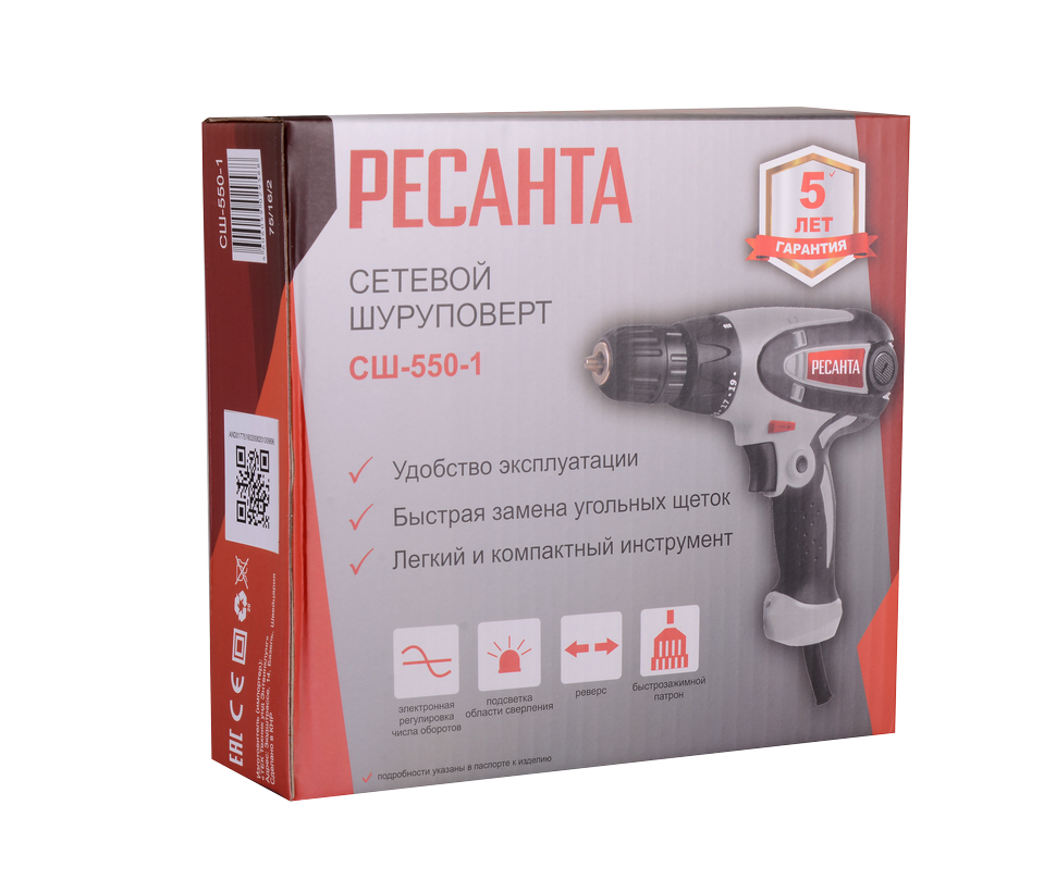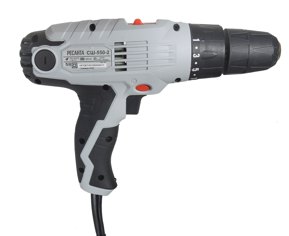 Сетевой шуруповерт Ресанта СШ-550-1 - функциональный электроинструмент с регулируемым крутящим моментом, предназначен для закручивания и откручивания шурупов, саморезов, винтов, дюбелей и других видов крепежных изделий, а также для сверления отверстий в различных материалах в быту и промышленности. Работает от электросети 220-230В. Данный шуруповерт отличается от модели СШ-550-2 тем, что только одна скорость, меньше частота вращения (0-800 оборотов/мин.) и максимальный вращающий момент (20Нм). Нет подсветки. Вместе с тем он значительно дешевле и идеально подойдет тем, кому шуруповерт редко нужен.