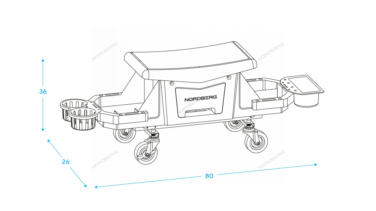 NORDBERG N30S12 — ремонтное сиденье на колёсах с выдвижным лотком для инструмента.