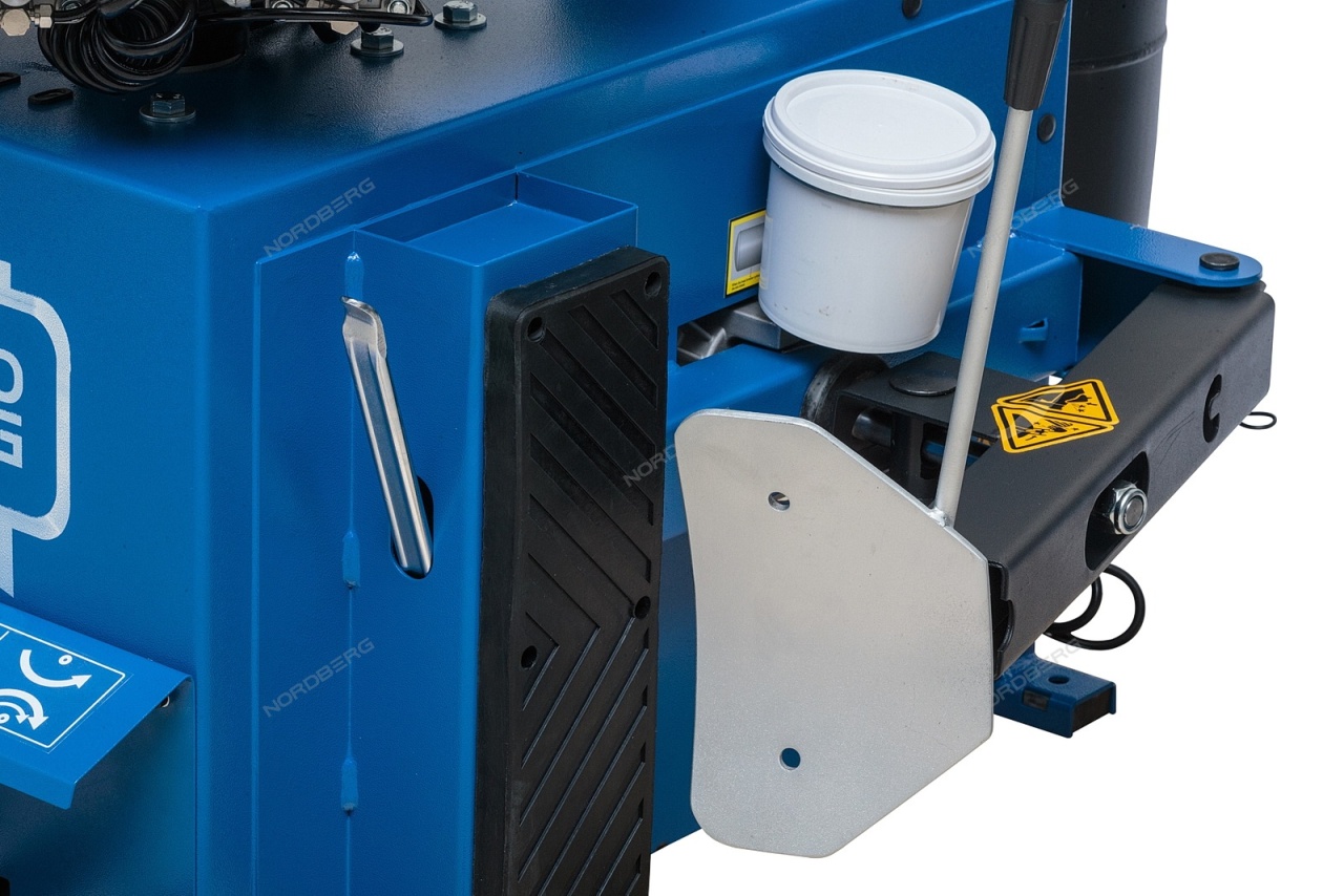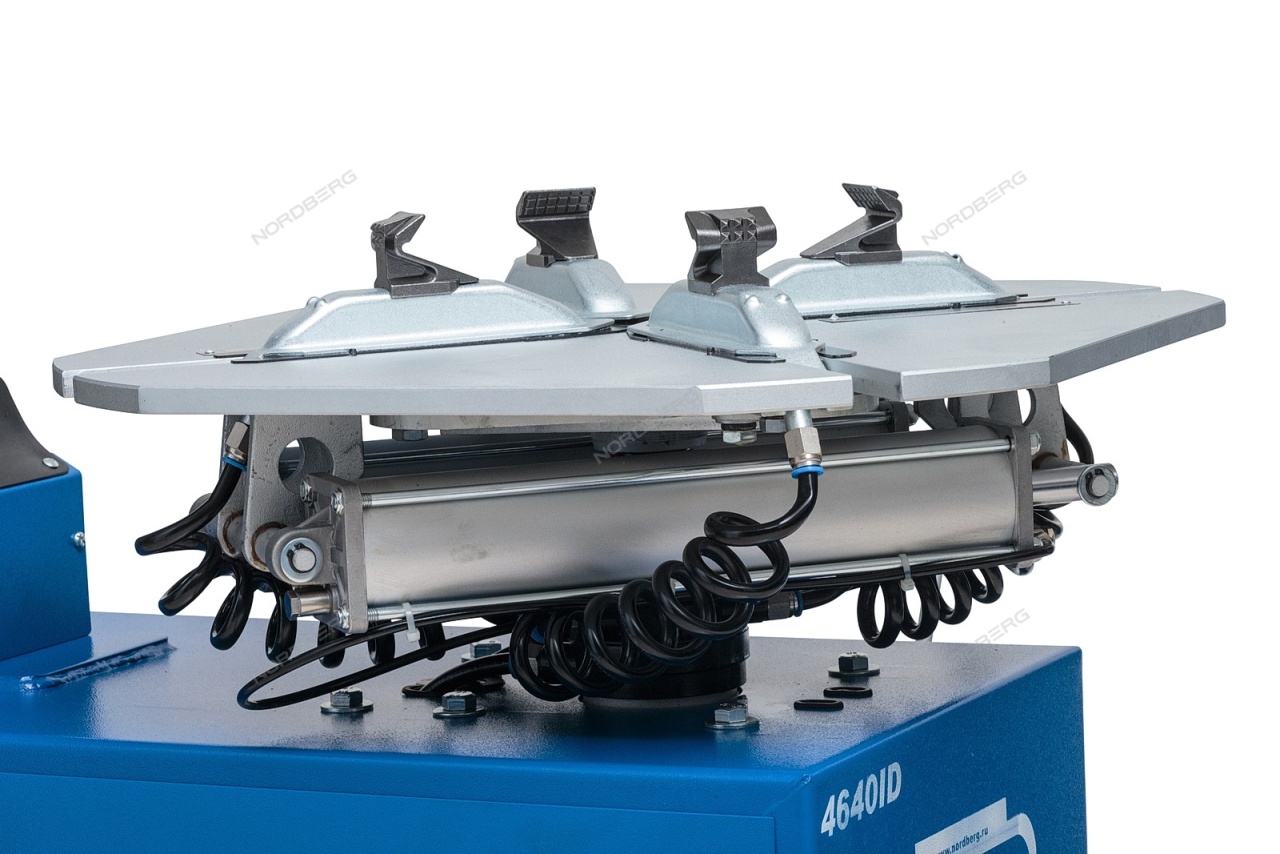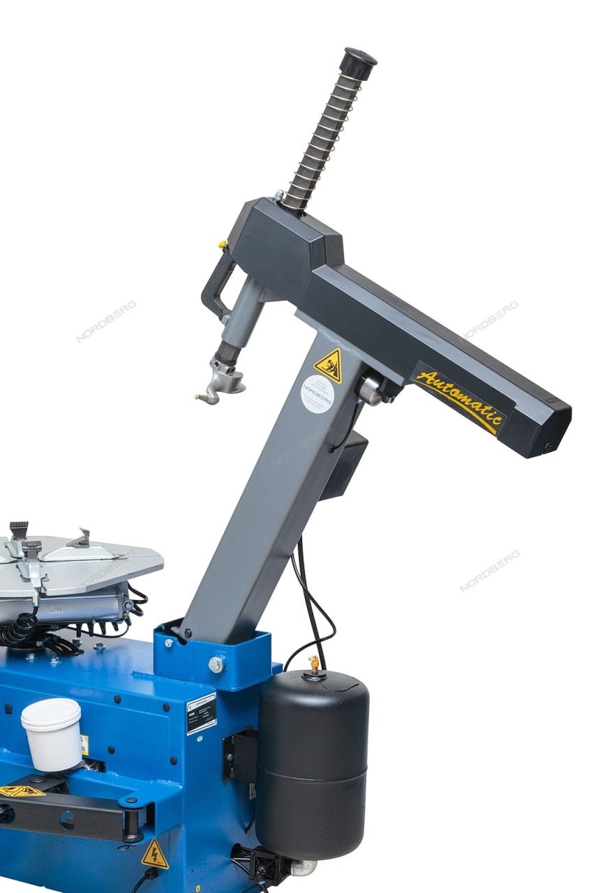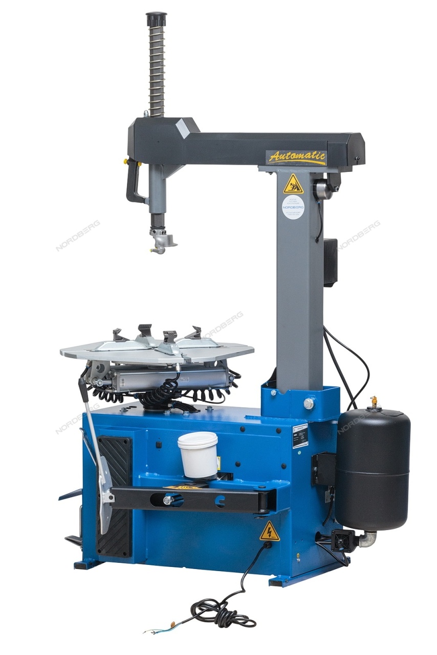 Автоматический шиномонтажный станок со взрывной накачкой предназначен для монтажа и демонтажа стандартных, низкопрофильных, камерных и бескамерных шин легковых автомобилей и легких грузовиков. Работает с дисками из различных сплавов. Для более эффективной работы в конструкции применен четырех кулачковый самоцентрирующийся механизм поворотного стола, работающий от пневмопривода. Простая и надежная конструкция позволяет обеспечить длительный цикл данных станков при средней интенсивности эксплуатации. Автоматический отвод колонны назад при помощи пневматического цилиндра обеспечивает сохранение настроек станка на весь цикл работы с колесами одного размера.