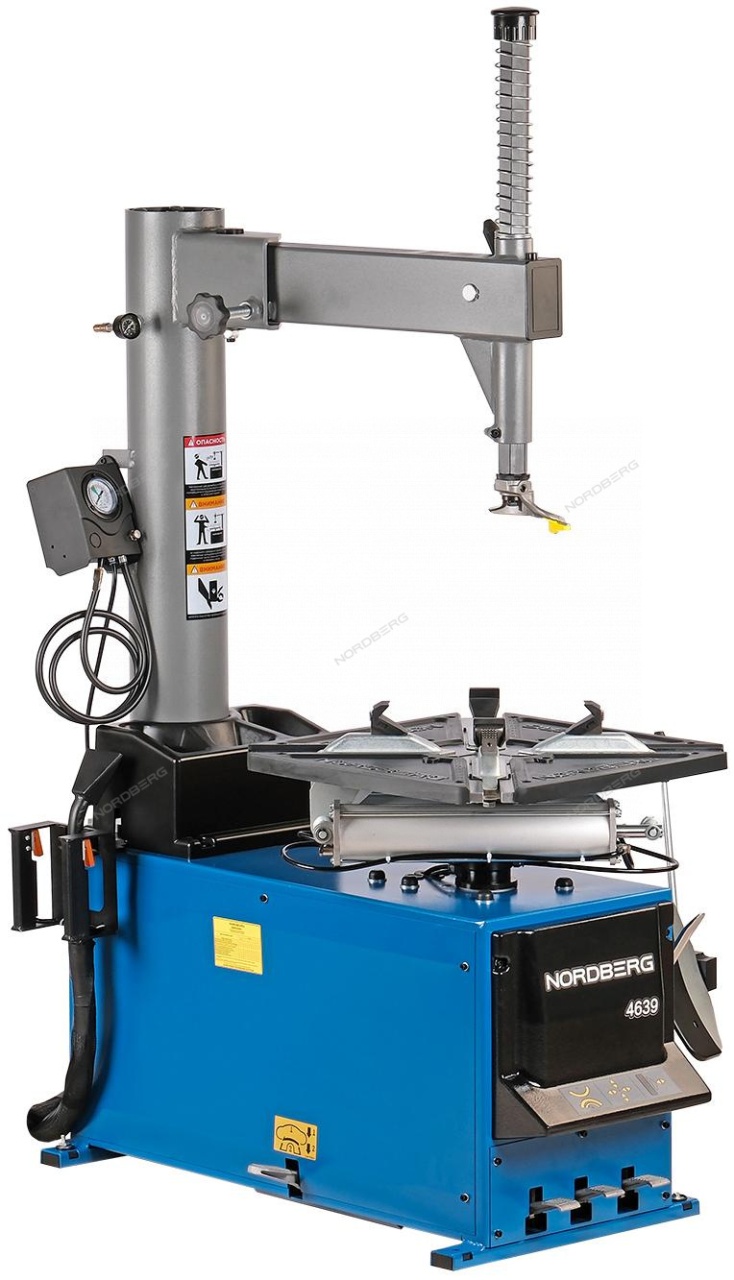 Полуавтоматический шиномонтажный станок NORDBERG 4639B. Предназначен для монтажа и демонтажа стандартных, низкопрофильных, камерных и безкамерных шин легковых автомобилей и легких грузовиков. Работает с дисками различных сплавов. Для более эффективной работы применен четырех кулачковый самоцентрирующийся механизм поворотного стола, работающий от пневмопривода. Простая и надежная конструкция позволяет обеспечить длительный цикл данных станков при средней интенсивности эксплуатации.