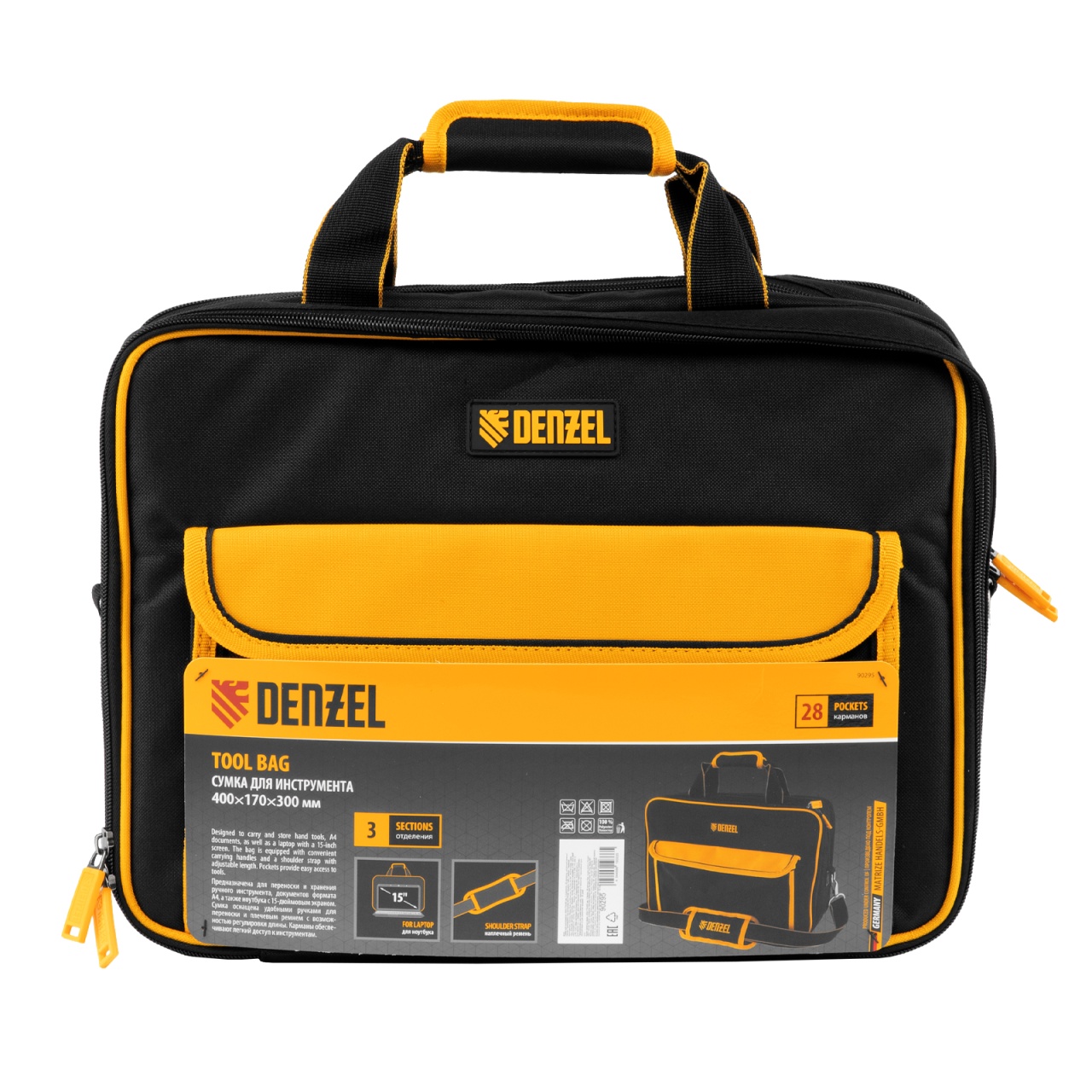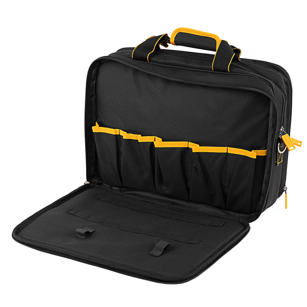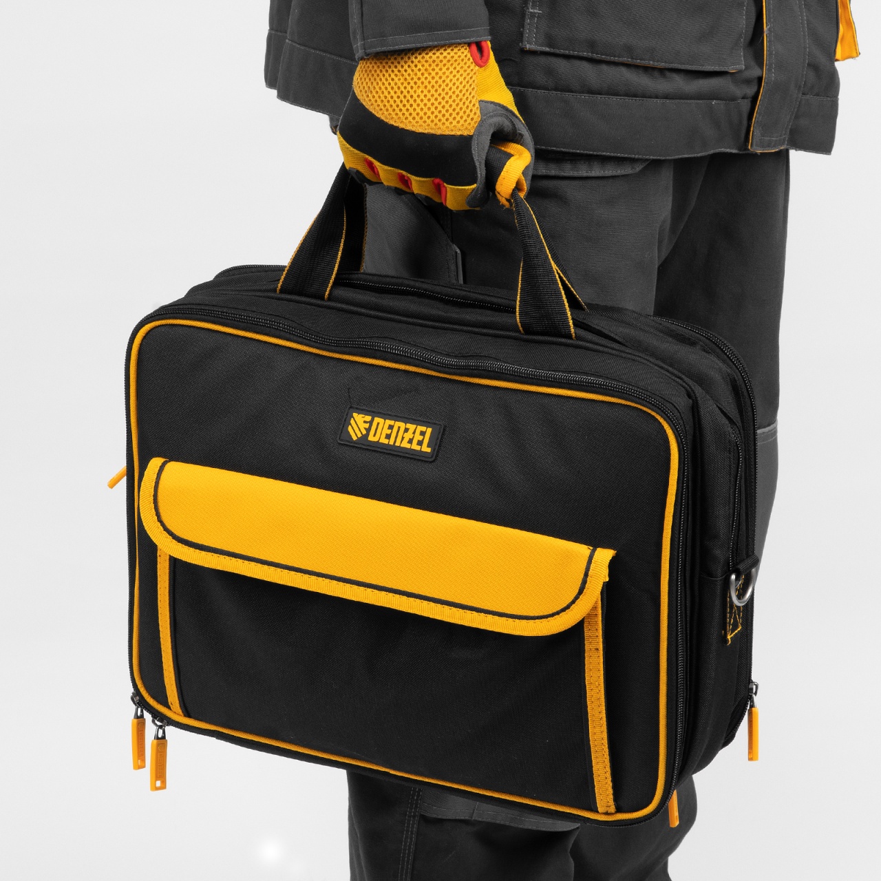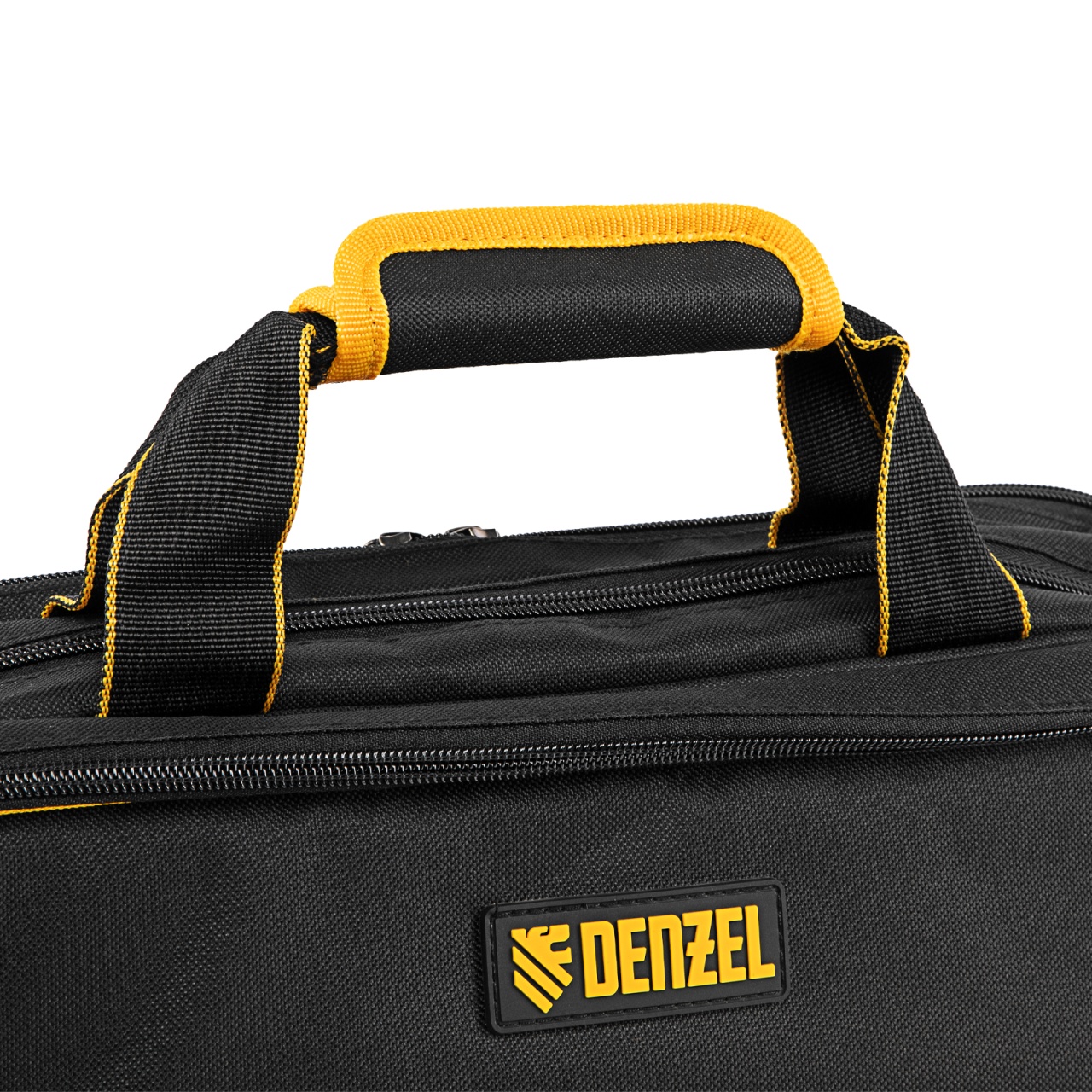 - Сумка с тремя отделениями оснащена двумя ручками для переноски и молниями для быстрого доступа к инструменту (металлические бегунки с пластиковой оболочкой).