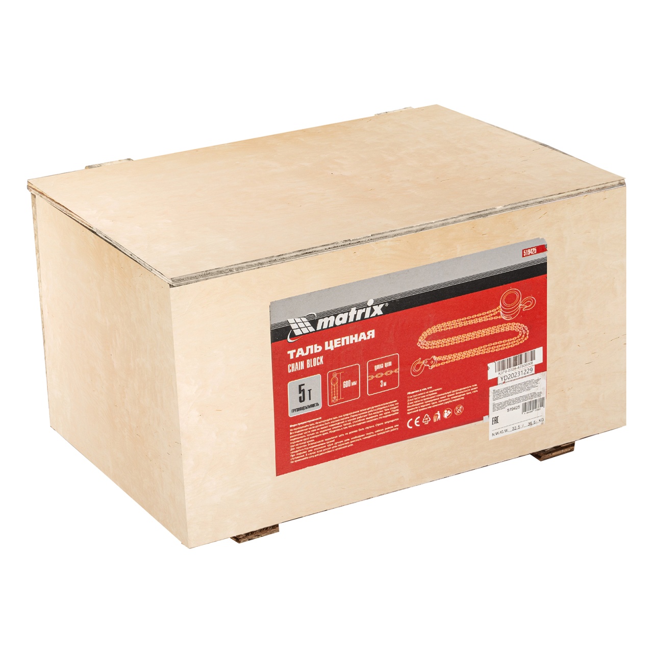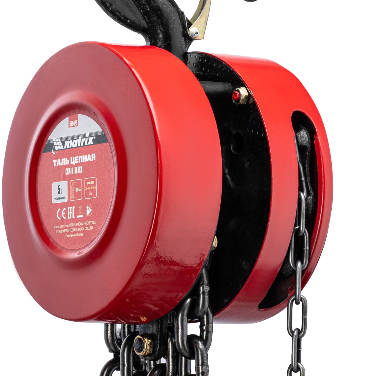 Цепная таль Matrix 519425 с расстоянием между крюками 600 мм позволяет поднимать грузы весом не более 5 т на высоту до 3 м. Простая конструкция облегчает использование. Механизм пригодится для проведения погрузочно-разгрузочных, ремонтных, монтажных работ.