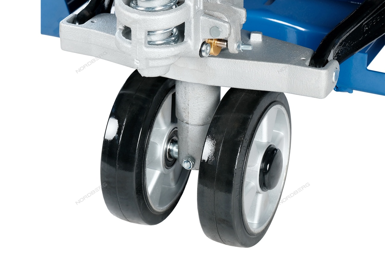 - Высокая маневренность — передние сдвоенные колеса с возможностью поворачиваться на 180 градусов