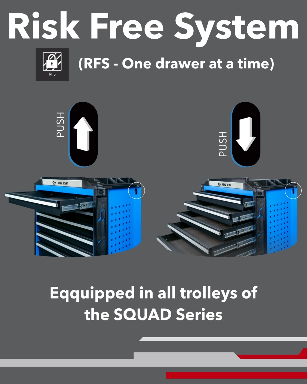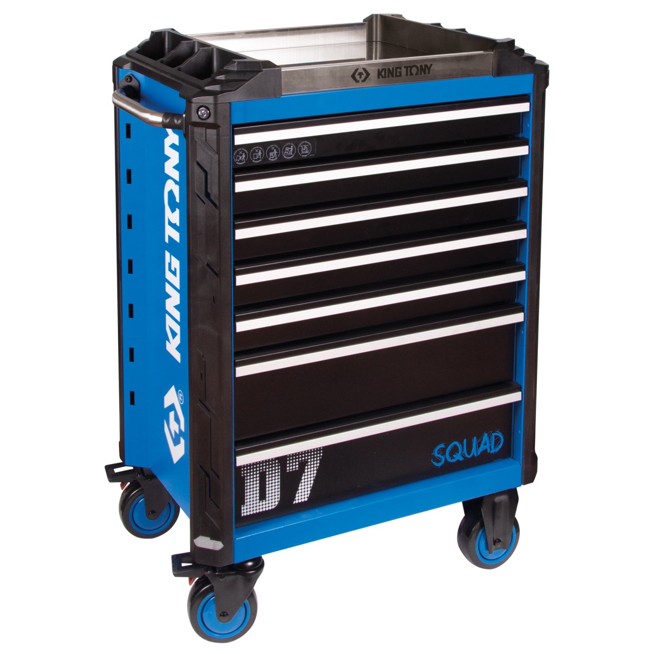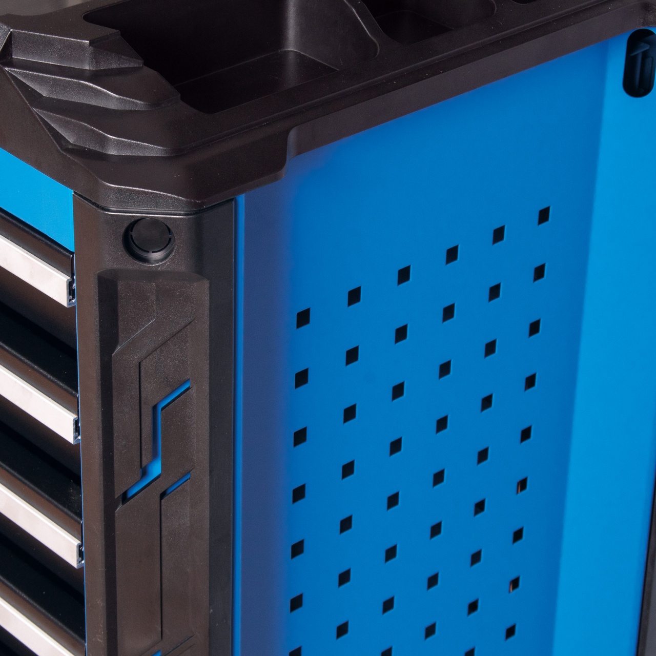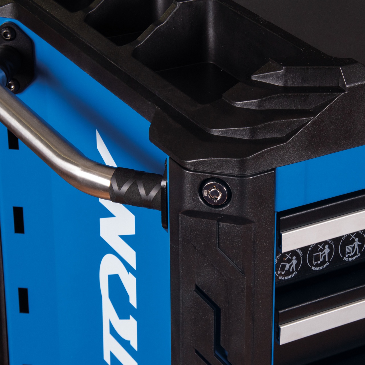 Материалы | Листовая сталь (корпус), нержавеющая сталь (столешница), вспененный полиуретан (защитные коврики), алюминий (рукояти ящиков), ABS пластик (защитные бамперы), TPR (колёса) |