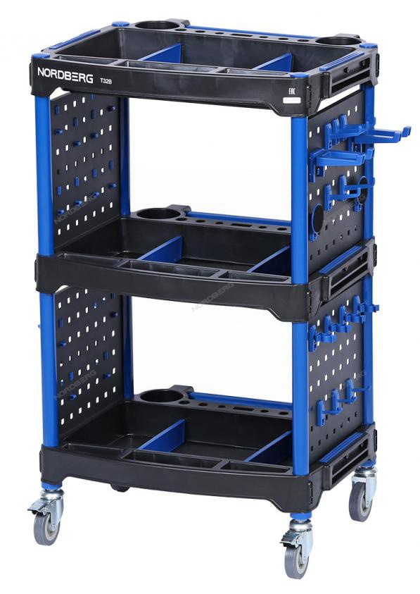 Тележка инструментальная NORDBERG T32B с полками – для удобства работы и хранения инструмента в автосервисах, СТО и частных гаражах.