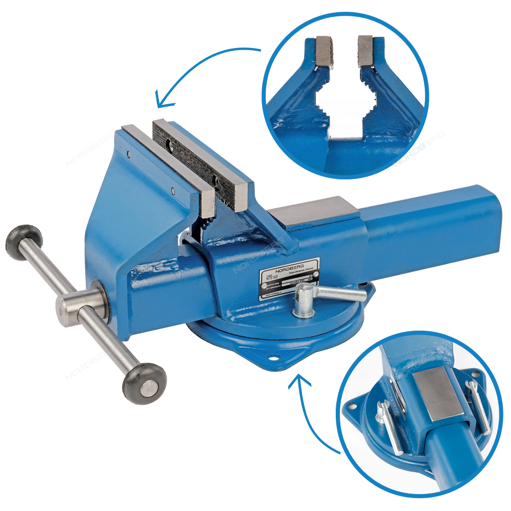 Слесарные тиски Nordberg предназначены для неподвижной фиксации различных деталей и заготовок при их механической обработке, проведении сборочно-демонтажных, формовочных и иных работ. Применяются в мастерских, автосервисах, на ремонтных предприятиях, в персональных гаражах и т.д.