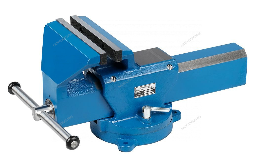 Основание тисков имеет поворотный механизм, благодаря которому корпус тисков можно разворачивать на 360°.
