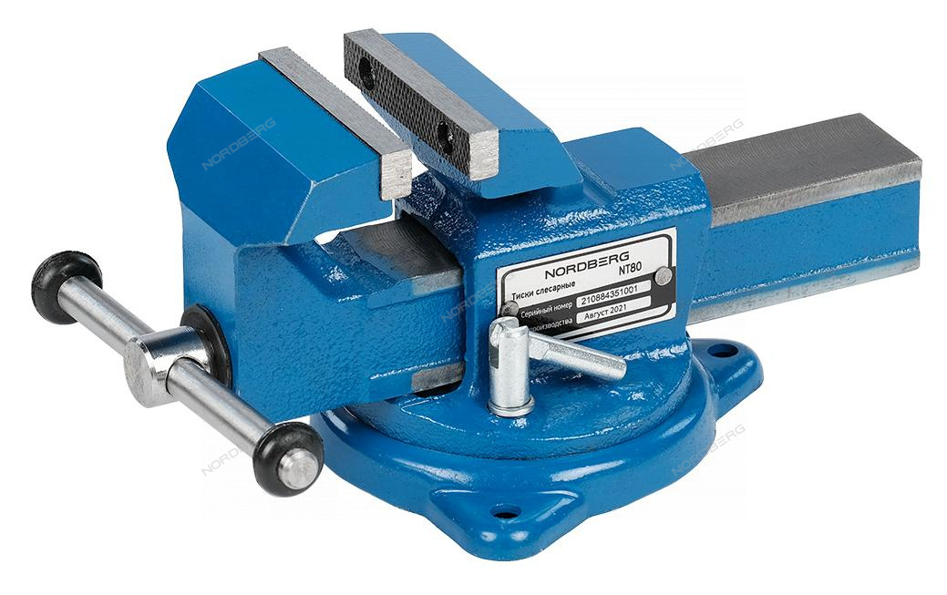 - Основание тисков имеет поворотный механизм, благодаря которому корпус тисков можно разворачивать на 360°.