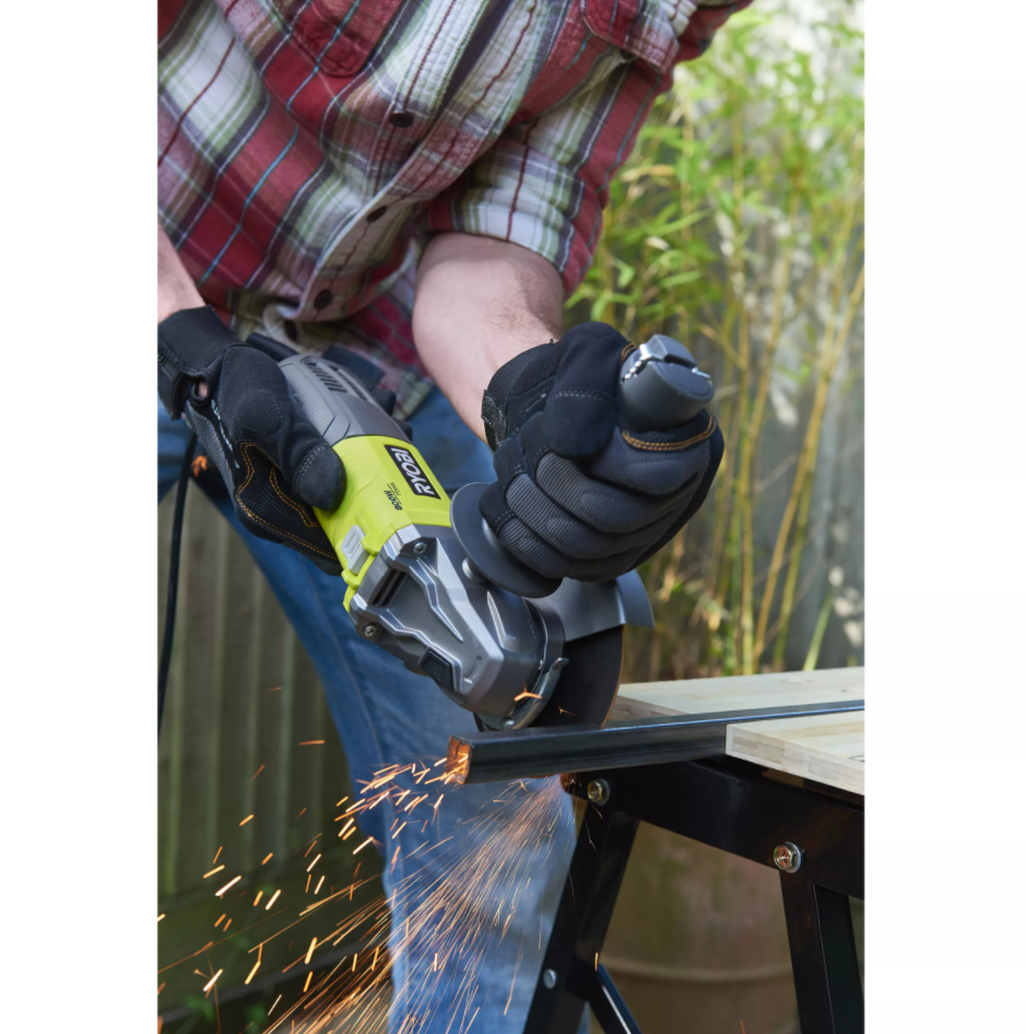 Угловая шлифмашина Ryobi RAG800-115G 5133002518 оснащена мощным двигателем с выдающейся для своего класса скоростью, что обеспечивает высокую производительность.