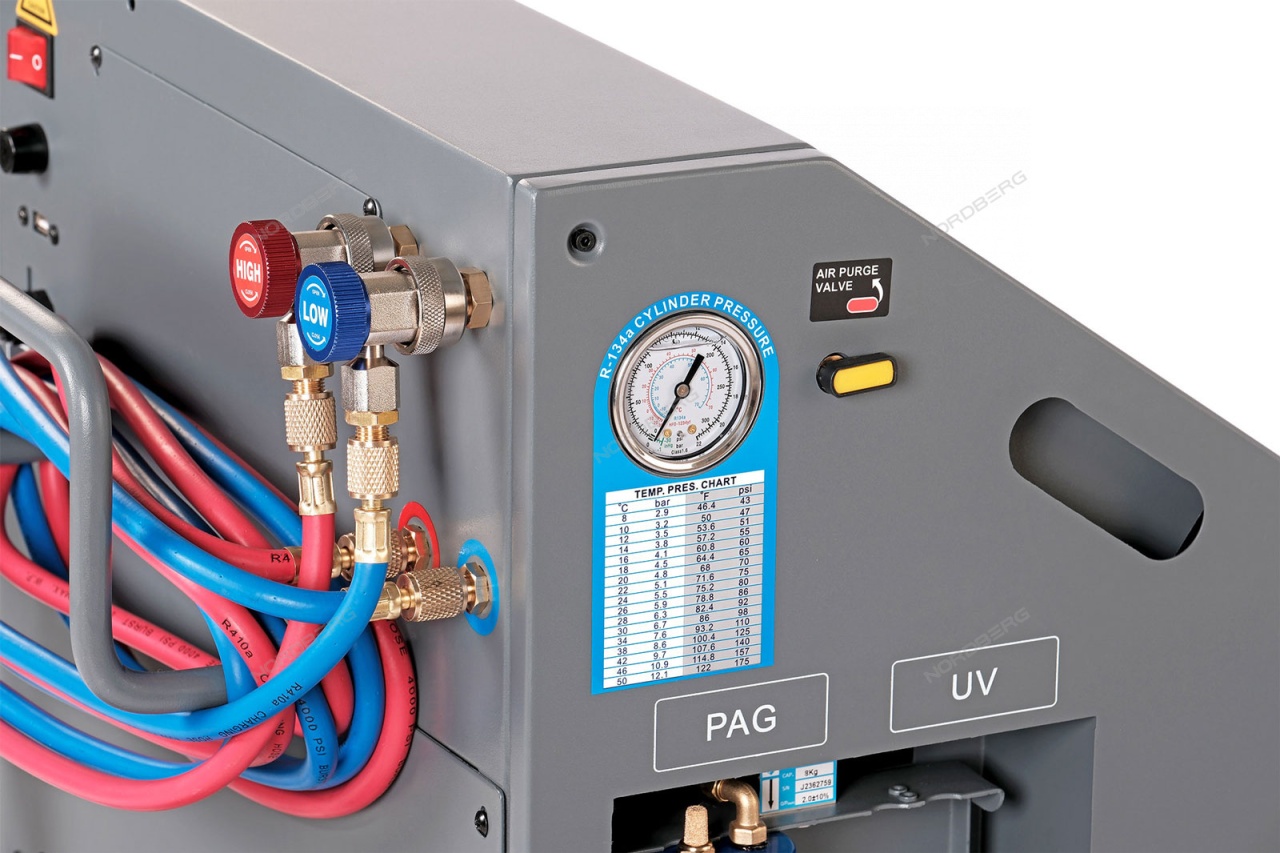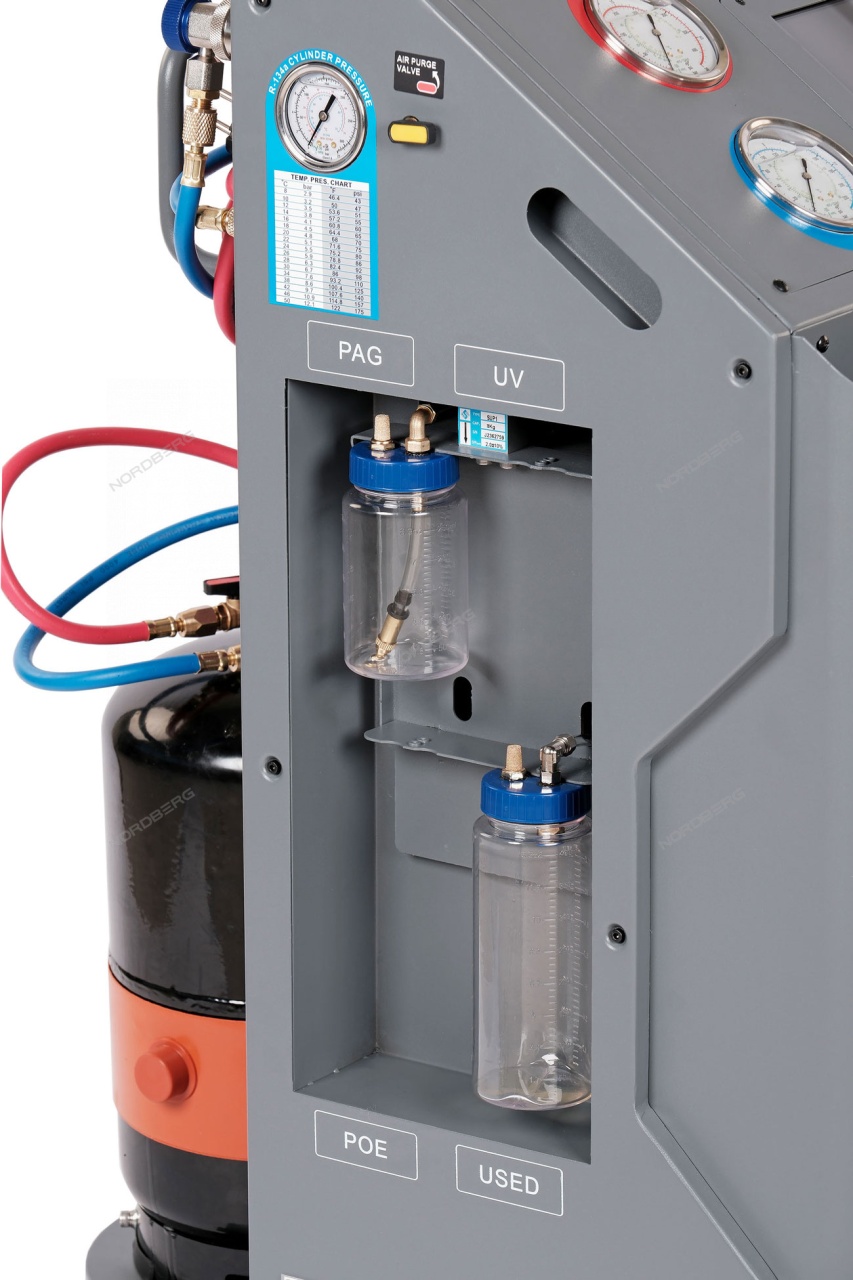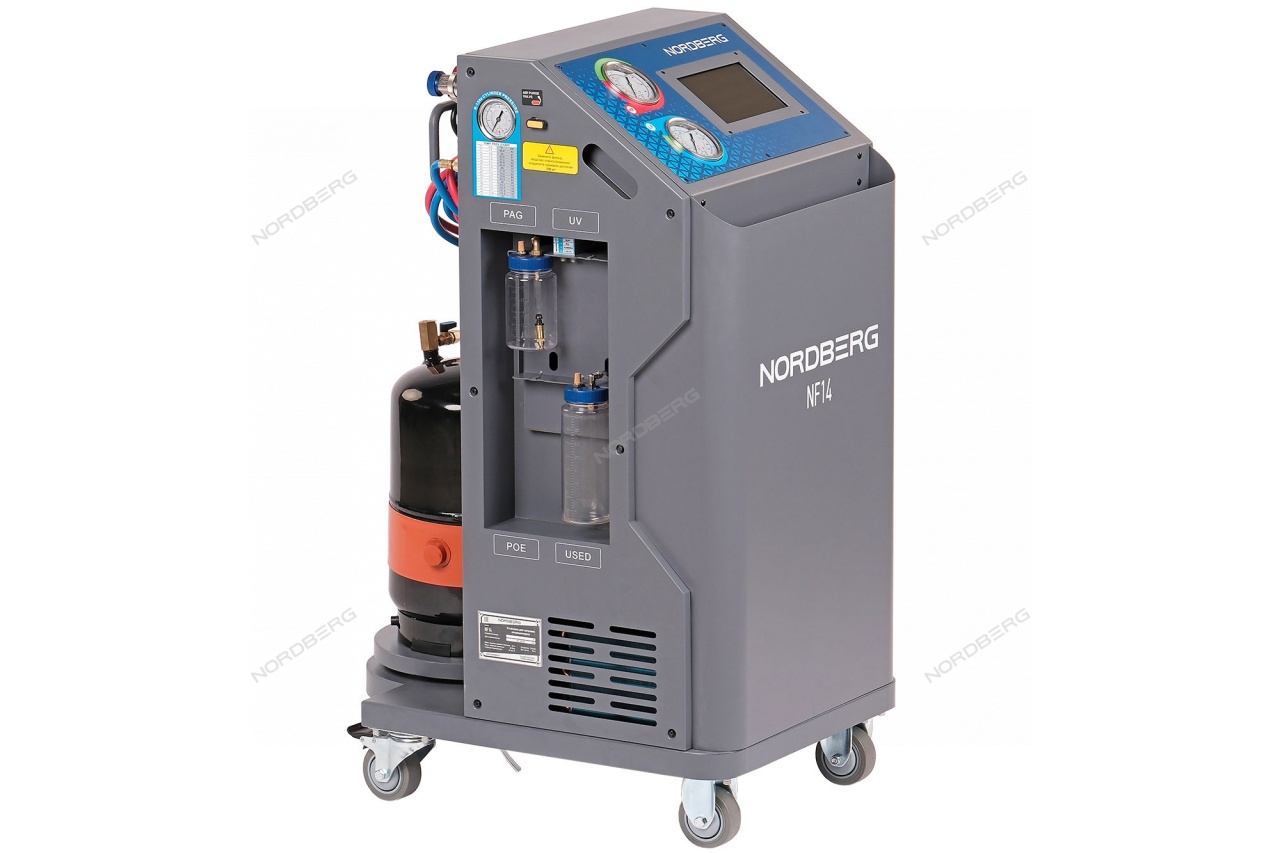 Автоматическая станция NORDBERG NF14 для заправки системы кондиционирования воздухом автомобилей представляет собой устройство по обслуживанию систем кондиционирования воздуха и выполняет следующие функции: