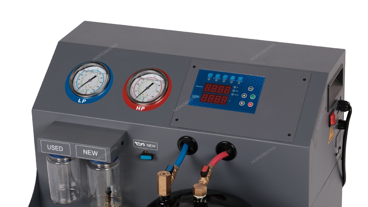 Станция для заправки автомобильных кондиционеров NORDBERG NF9E – оборудование для обслуживания систем кондиционирования автомобилей в автосервисах и СТО.