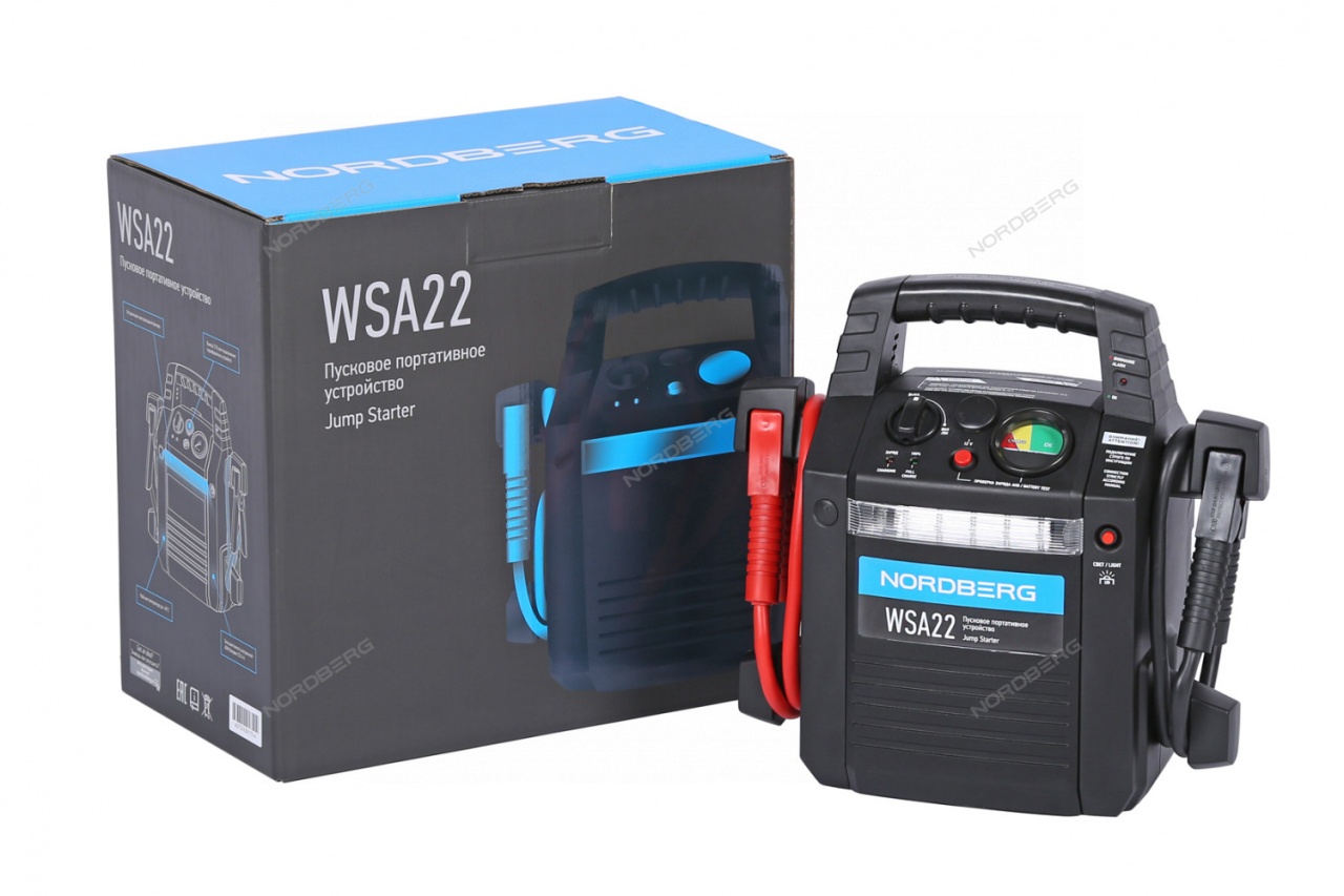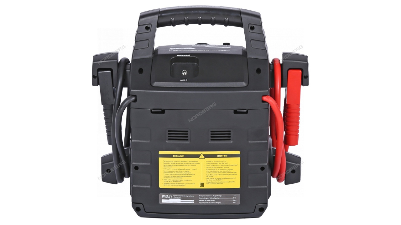 Пусковое портативное устройство NORDBERG WSA22 – компактная модель для запуска бензиновых и дизельных двигателей, а также зарядки аккумуляторных батарей.