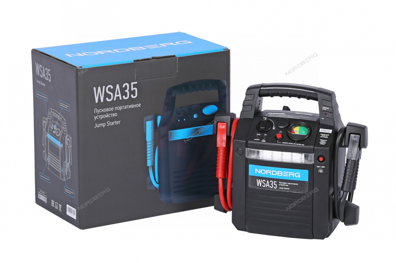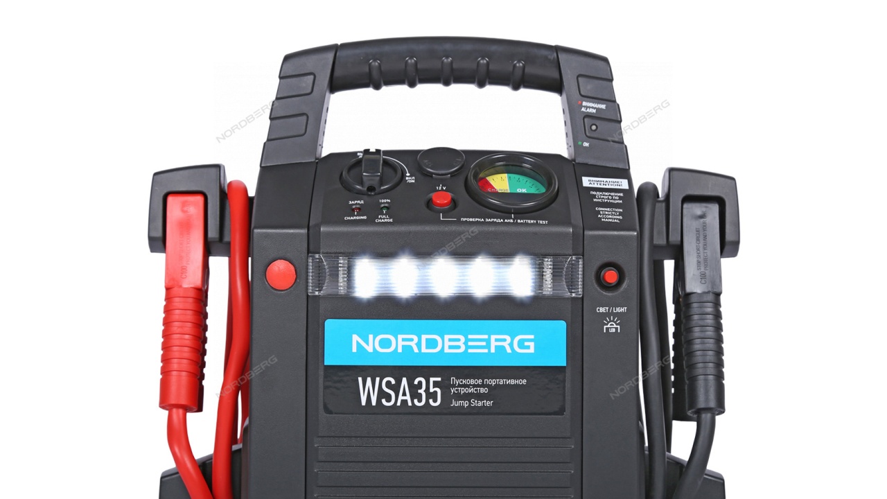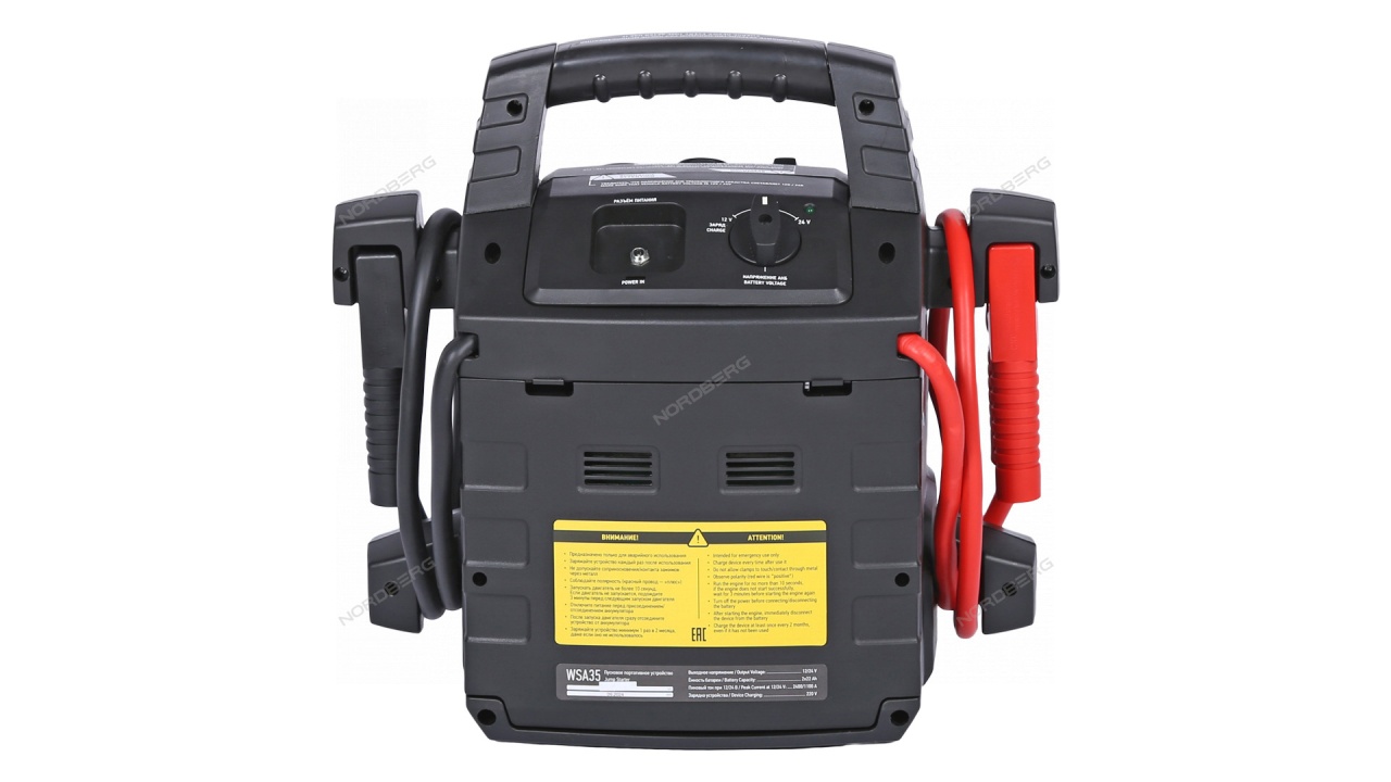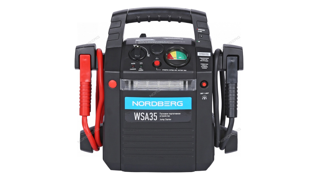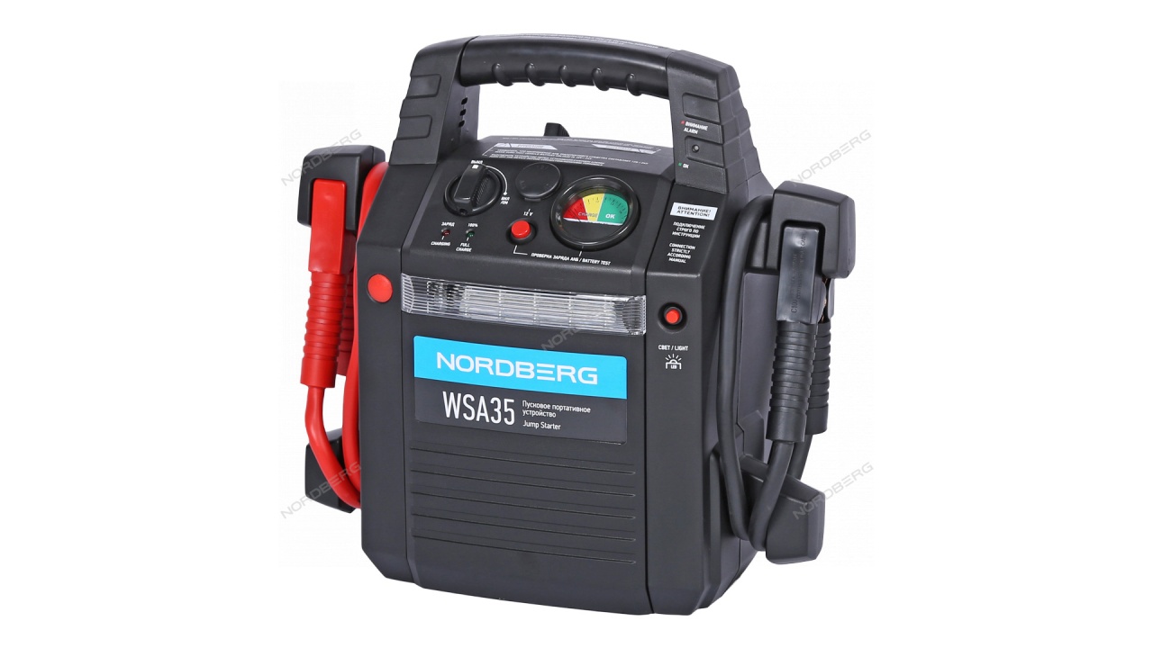 Пусковое портативное устройство NORDBERG WSA35 – компактная модель для запуска бензиновых и дизельных двигателей, а также зарядки аккумуляторных батарей. Устройство предназначено для быстрого запуска двигателей транспортных средств с аккумуляторной батареей 12 В или 24 В в условиях, когда аккумулятор транспортного средства разряжен. Бустер также используется для зарядки телефонов, планшетов и видеокамер и др. устройств, напряжение ЗУ которых, составляет 12 В. Бустер NORDBERG WSA35 – универсальное устройство, позволяющее в кратчайшие сроки как запустить различные двигатели, так и зарядить мобильные устройства.