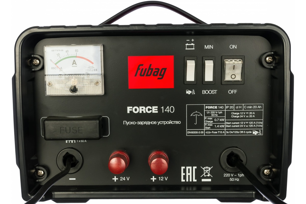 Пуско-зарядное устройство FUBAG FORCE 140 – оптимальный выбор для зарядки аккумуляторов до 400 А·ч и запуска двигателя при полностью разряженной АКБ.