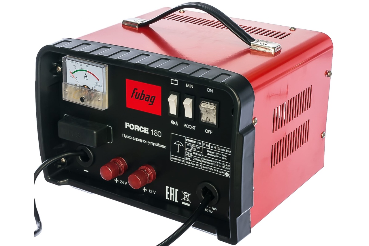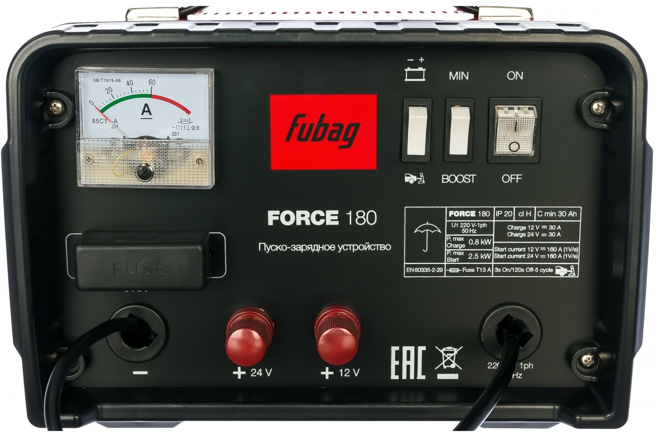 Пуско-зарядное устройство FUBAG FORCE 180 поможет запустить двигатель при полностью разряженном аккумуляторе и зарядить АКБ емкостью до 500 А·ч.