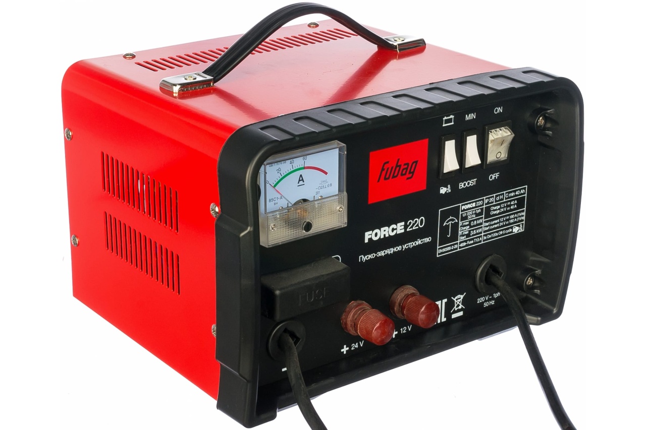 Пуско-зарядное устройство FUBAG FORCE 220 быстро запустит двигатель при полностью разряженном аккумуляторе. Аппарат полностью безопасен и сможет зарядить аккумулятор емкостью до 700 А·ч.