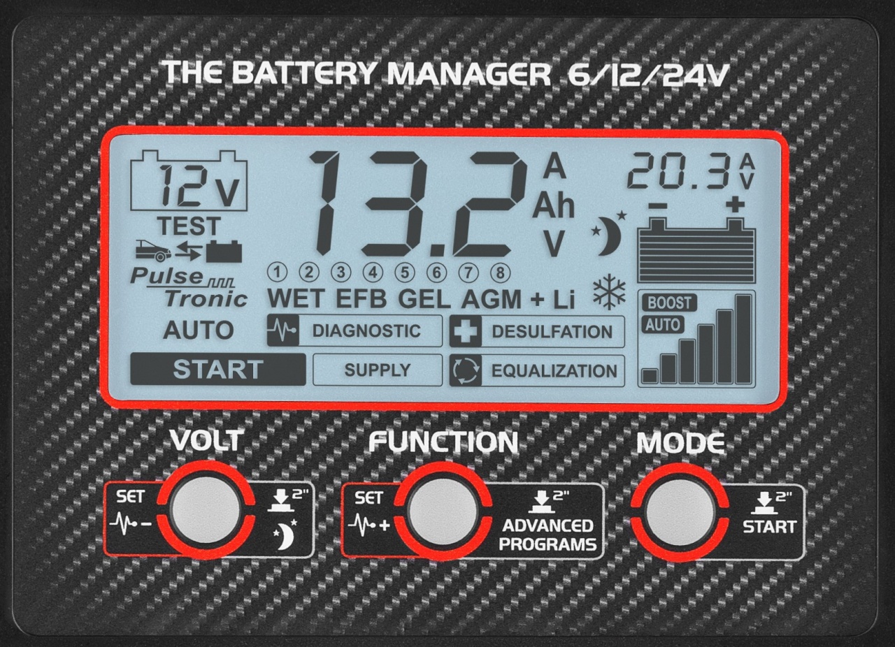 • Выбор режима: ручного, автоматического, быстрого заряда BOOST и быстрого пуска