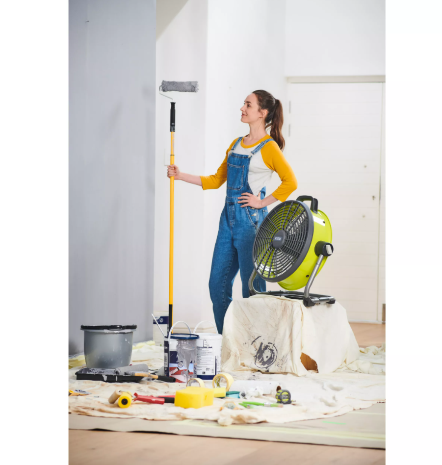 Вентилятор Ryobi ONE+ R18F5-0 5133004712 используется для сушки свежевыкрашенных помещений, работы в гараже или в мастерской.