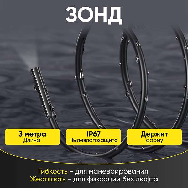 Камера эндоскопа диаметром всего 5,5 мм и гибкий зонд длиной 3 метра идеально подходят для работы в ограниченных пространствах.