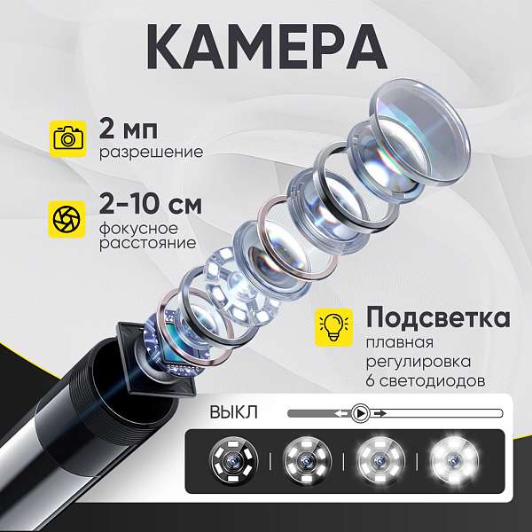 • Камера 2 Мп позволяет увеличивать изображение в программе эндоскопа без ухудшения качества