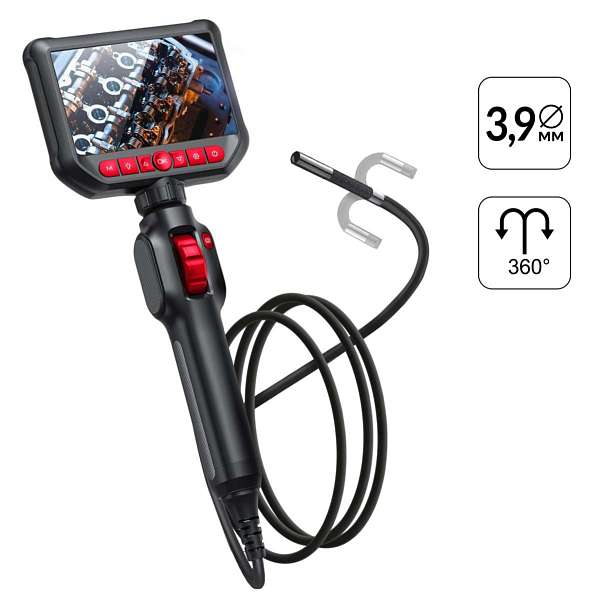 Для работы в темных местах предусмотрена регулируемая LED-подсветка. Эндоскоп работает от собственного аккумулятора до 3,5 часов.