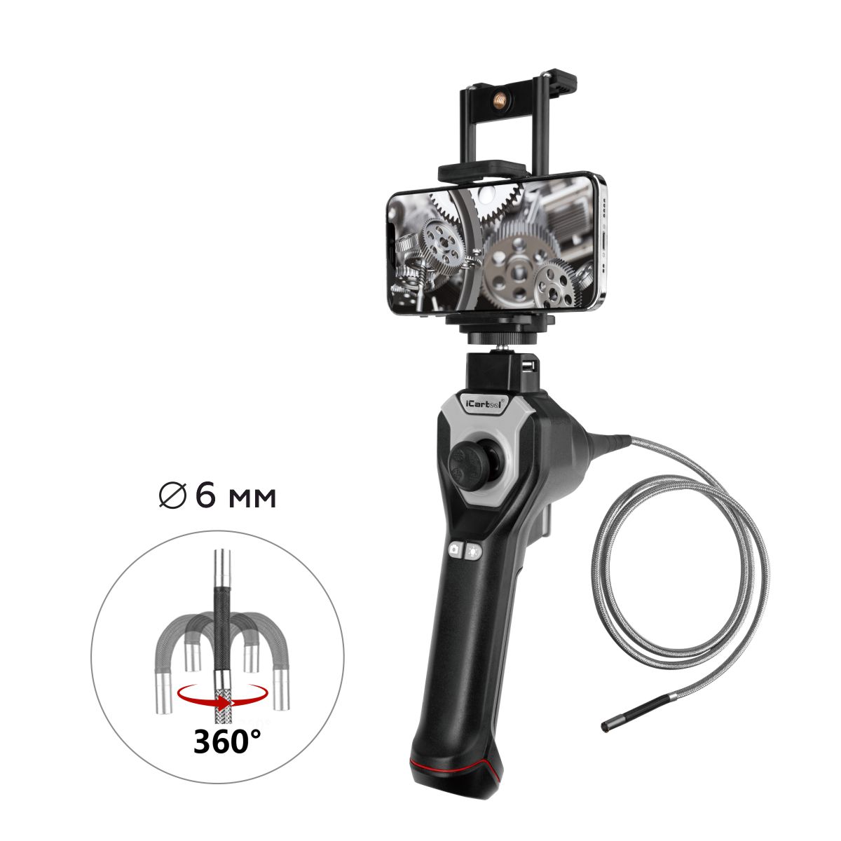 iCartool IC-V106AW - промышленный управляемый видеоэндоскоп с механизмом всесторонней артикуляции на 360 градусов для панорамного обзора исследуемой области. Управление камерой происходит с помощью чувствительного джойстика, расположенного на рукоятке прибора. Предусмотрена фиксация (блокировка) головки зонда в заданном положении. Доступные диаметры: 4 мм, 6 мм.