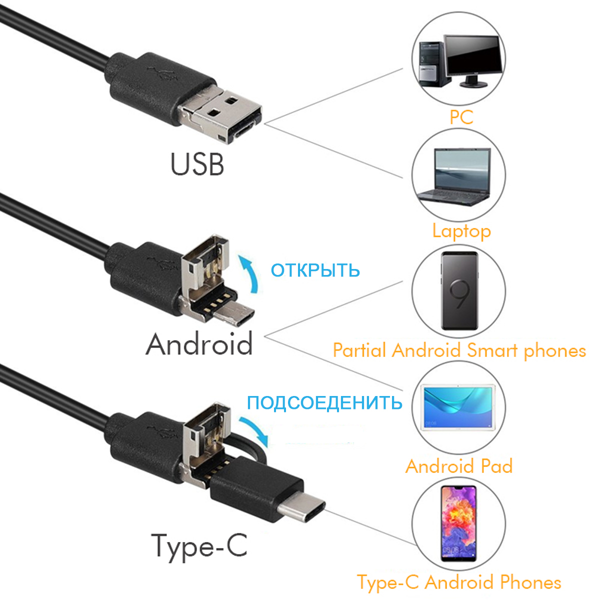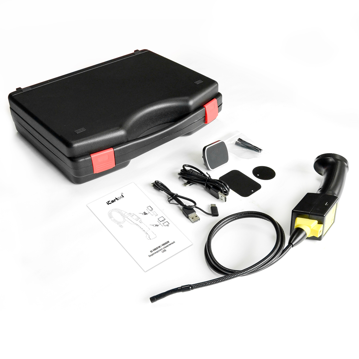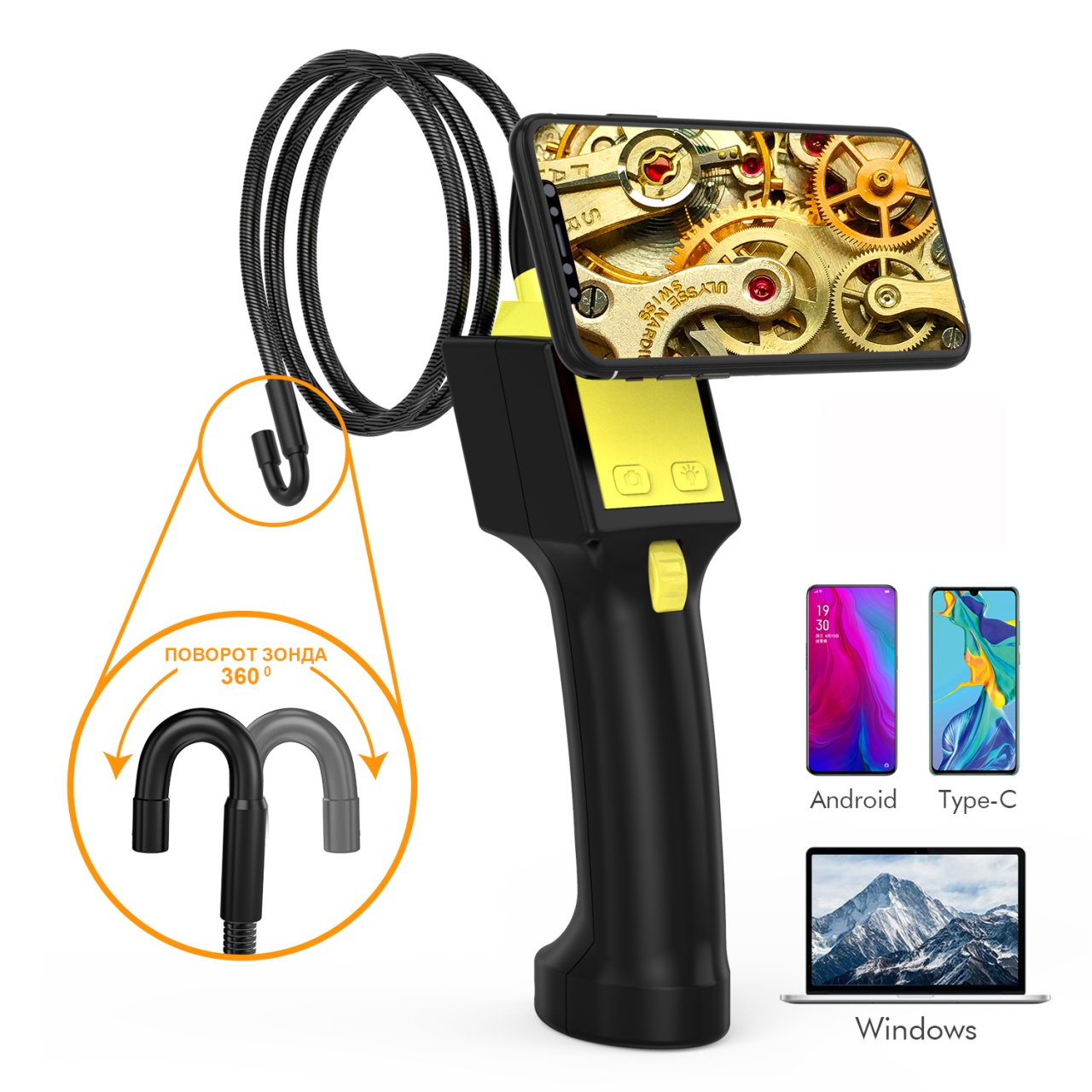 Управляемый видеоэндоскоп iCartool IC-V8052W с поворотной камерой на 360° и разрешением видеоматрицы 1Мп. Тип зонда - полужесткий, с эффектом памяти формы, имеет диаметр 8,5 мм и длину 0,8 метра. Видеоэндоскоп позволяет передавать изображения на смартфон или компьютер посредством USB соединения. В комплект входит многофункциональный USB кабель, при помощи которого можно подключить эндоскоп к различным устройствам с ОС Android/ Windows/ Mac. Для крепления смартфона используется площадка с мощным магнитом. Регулировка яркости подсветки, а также запись фото и видео производится при помощи "горячих" клавиш на рукояти прибора в одно касание.