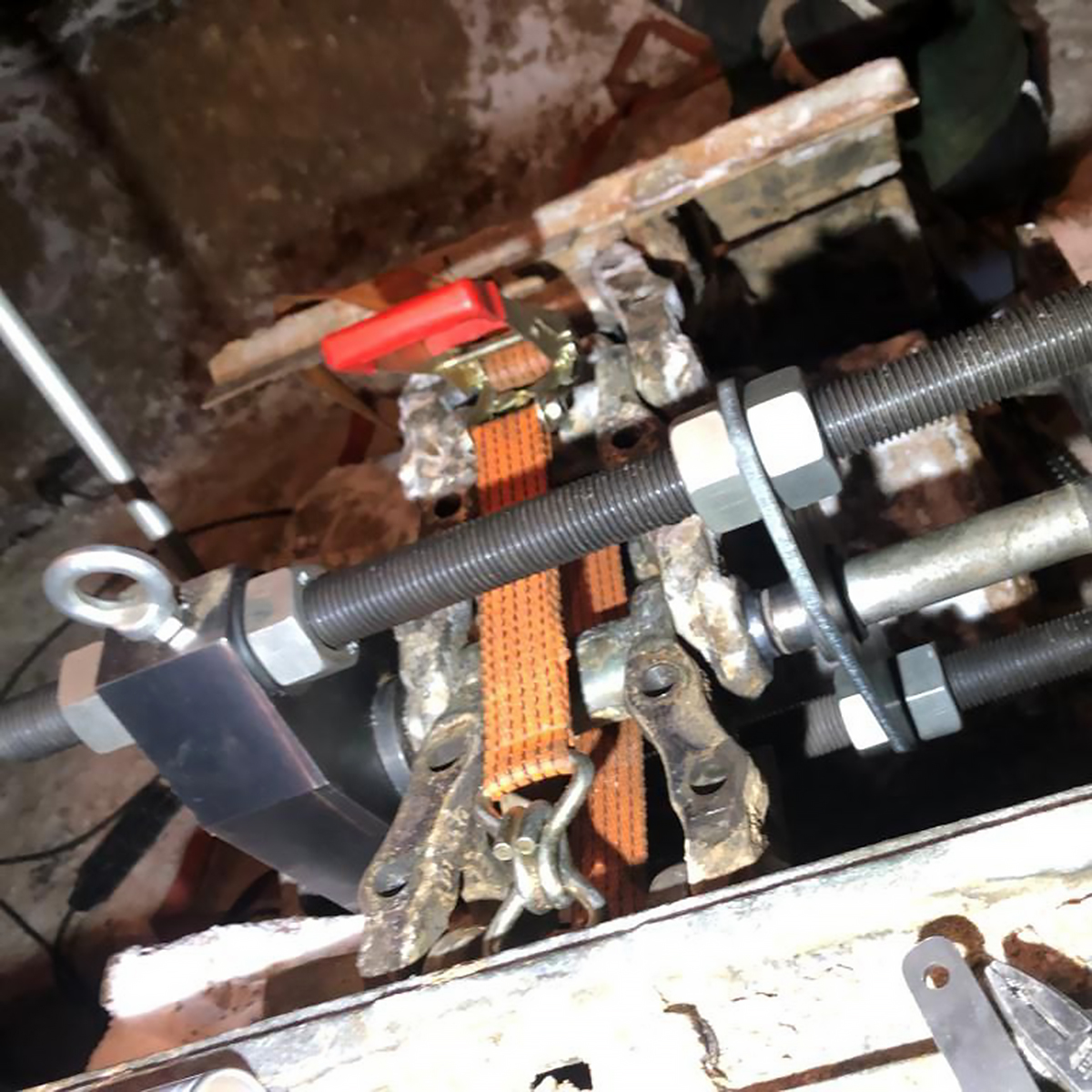 • Конструкция позволяет разобрать пресс, перенести детали по частям на место проведения работ (при отсутствии возможности доставки на место транспортными средствами), собрать его и приступить к работе. Следовательно, появляется возможность производить работы по ремонту гусеничной цепи за пределами сервисной зоны.
