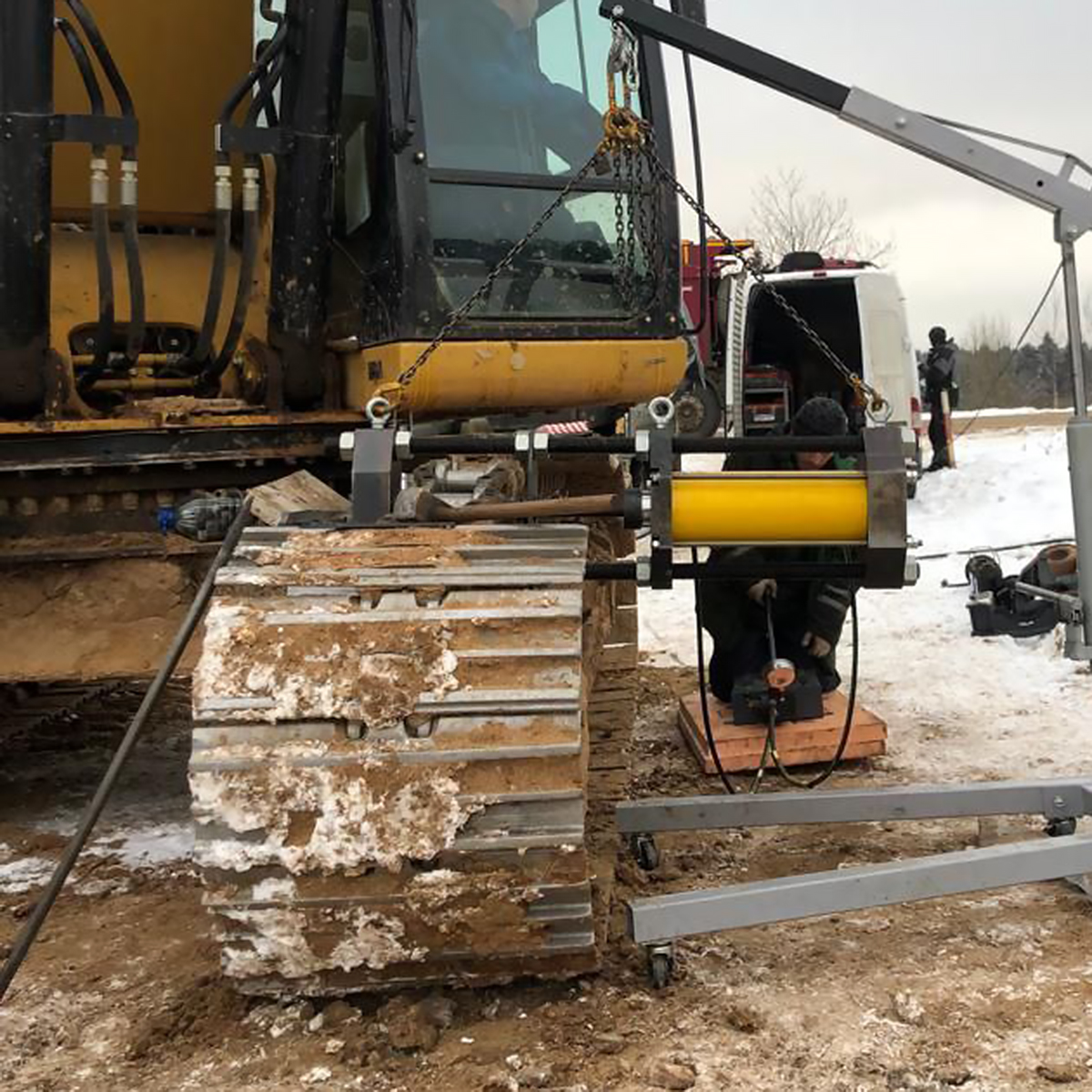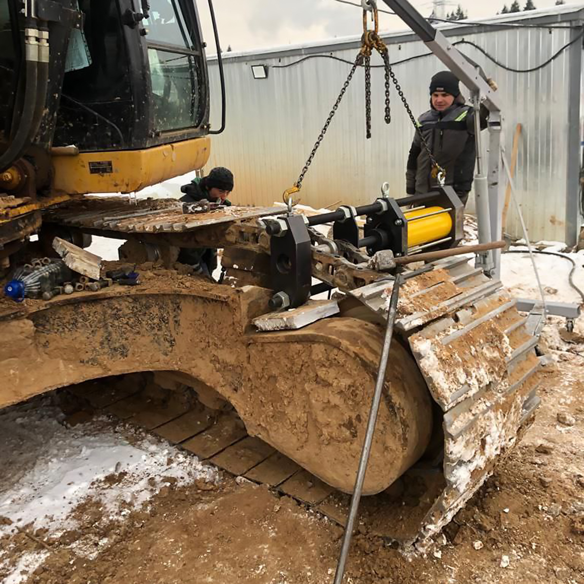• Манометр на ручном гидравлическом насосе позволяет контролировать процесс выпрессовки / запрессовки пальца гусеничной цепи.