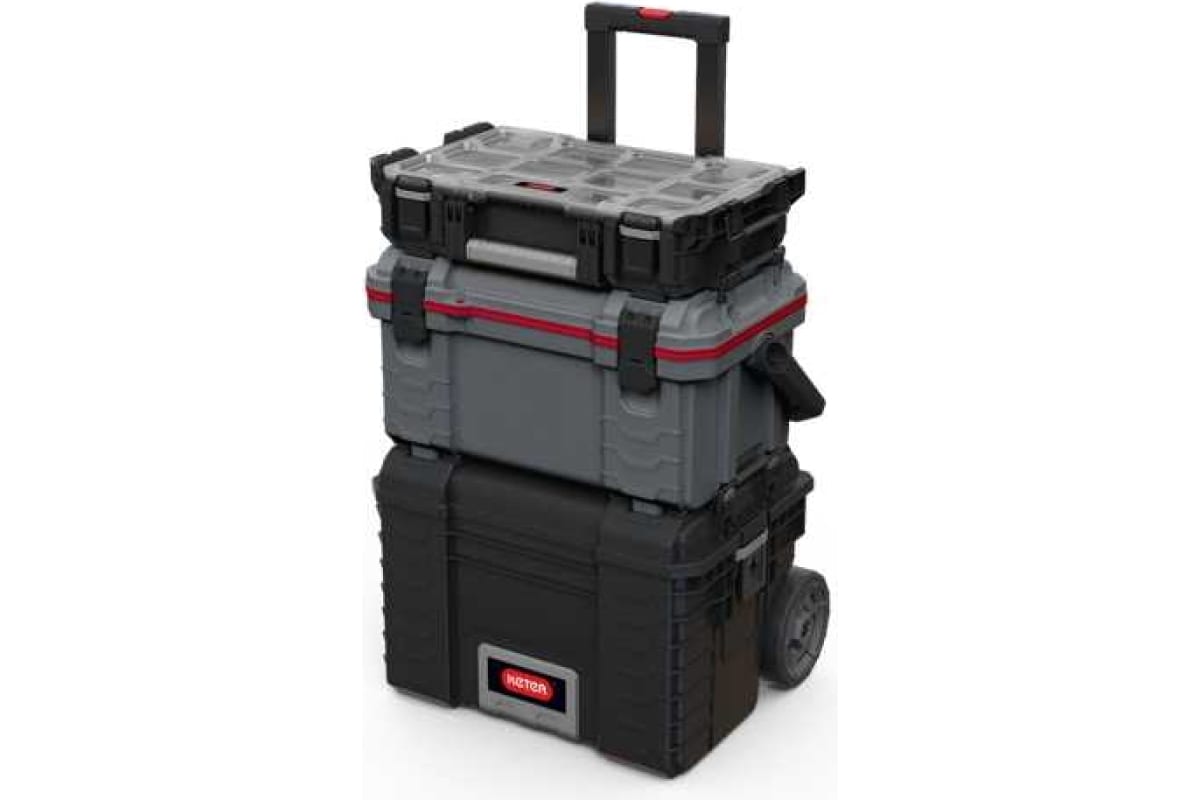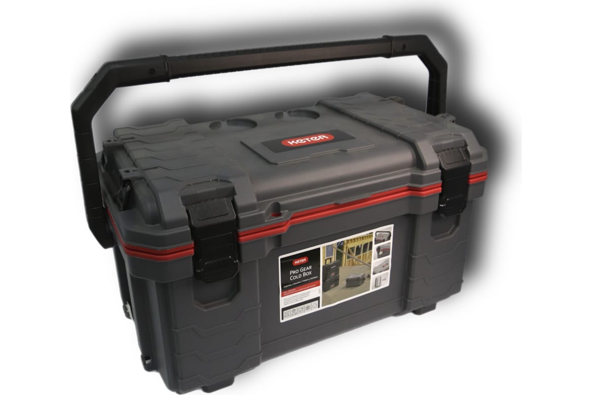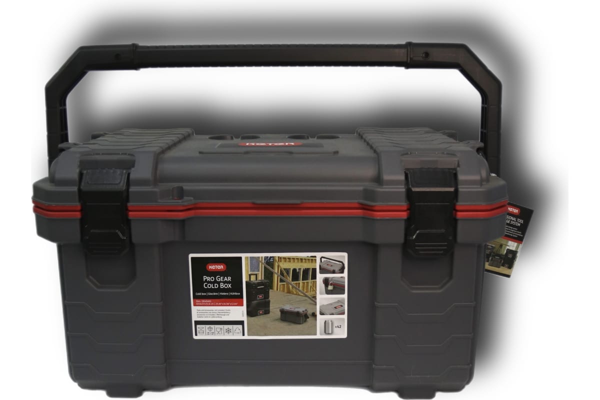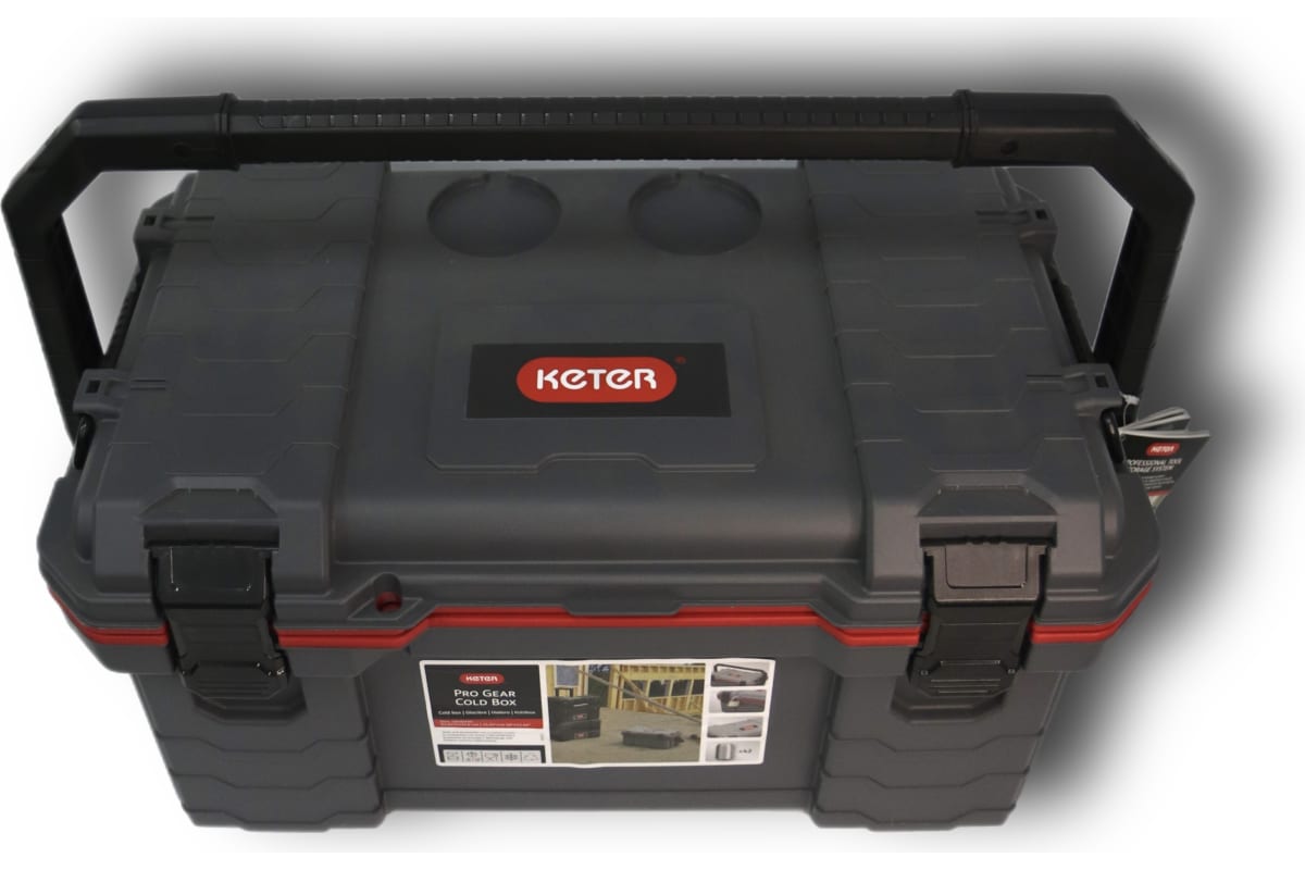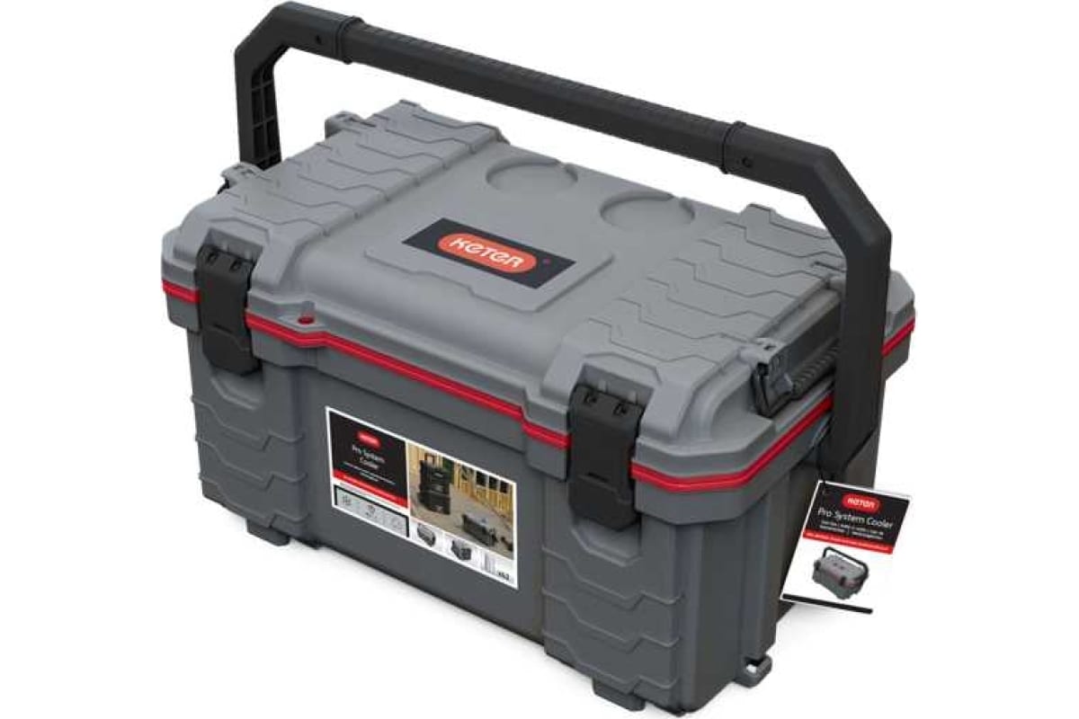 Ящик Keter Pro gear system cooler представляет собой универсальный ящик для различных целей. Кулер емкостью 27 литров позволяет без проблем доставлять любимые напитки и еду на рабочее место. Ящик Keter Pro gear system cooler совместим с профессиональной системой хранения инструментов PRO SYSTEM. Большая ручка для переноски удобна в использовании. Ящик вмещает 42 банки 2 удобных подстаканника в крышке. Сверхпрочная защелка исключает внезапное открывание ящика. Есть возможность запирать ящик на ключ.