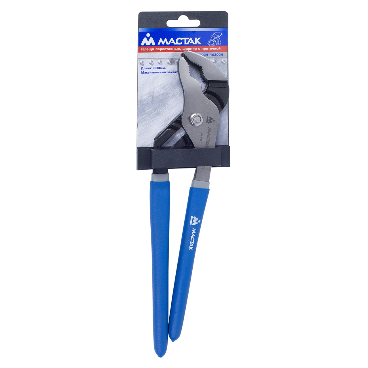 Клещи переставные МАСТАК 034-10300H поставляются на пластиковом держателе для торгового стенда.